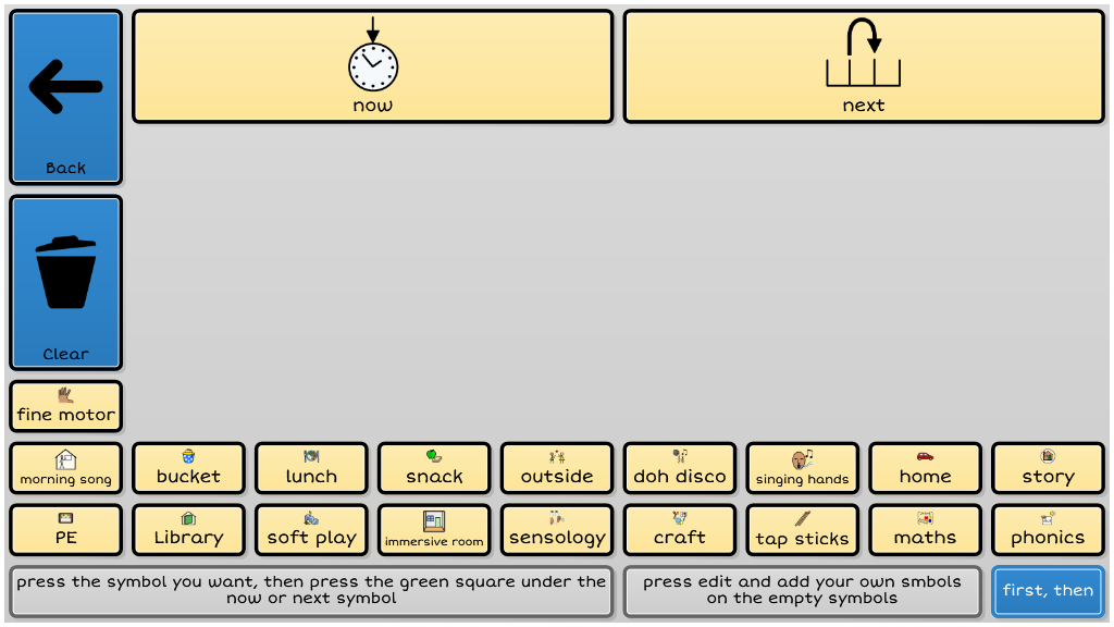 Now and next symbol support First and then symbol support Education Special Education Schools Communication EYFS Early years SEN S.E.N Support Communication Community Support Out and about Independence Adult AAC User Child AAC user Now and next School SEN School Symbol Support First then Communication board Now and Next board