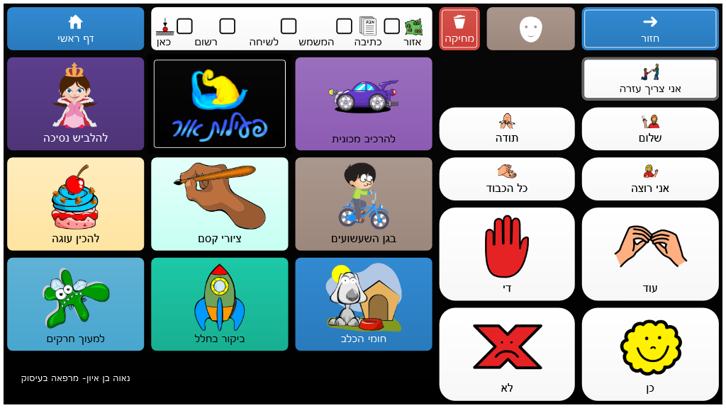 יישום זה נבנה על ידי נאוה בן איון, מרפאה בעיסוק תוך היוועצות בקלינאיות תקשורת שונות. יישום זה מרכז יישומים רבים ומגוונים לפעילויות פנאי עם העיניים. יישומי הפנאי מאורגנים לפי קטגוריות פנאי ליצירת גישה נגישה, מזמינה ומעודדת השתתפות עבור משתמשי התת"ח. מטרת בניית יישום זה היתה לאפשר למשתמשי התת"ח, גם אלו החווים מגבלה קוגניטיבית משמעותית, העסקה עצמית ופנאי מספק ומהנה, בחירה ופיתוח העדפות, ולהפחית את התלות במבוגר.
