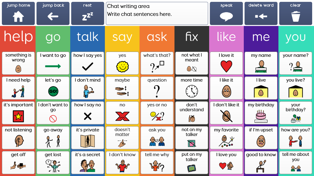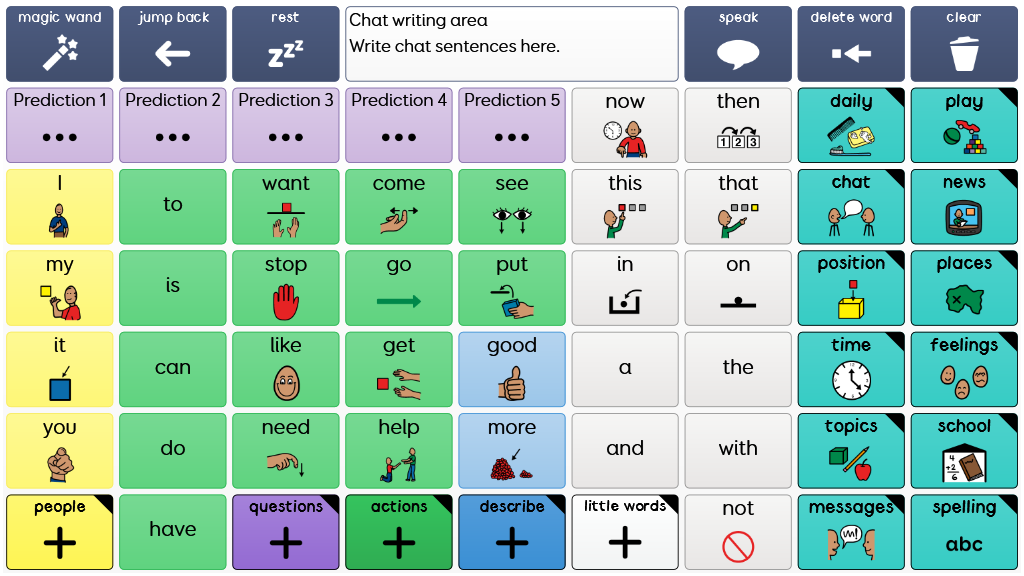 Super Core is an easy-to-use core vocabulary designed to help early AAC users experience success with symbol communication. It combines a consistent core vocabulary with context specific language, focusing on daily routines and play activities to keep communication meaningful and motivating! Super Core is designed to provide functional yet simple vocabulary, that supports language, learning and literacy development. It is grounded in research, and was developed by Smartbox Speech and Language Therapist Daisy Clay. Super Core is available in PCS or Symbol Stix, and is also available with larger cells (Super Core 30). v2.22