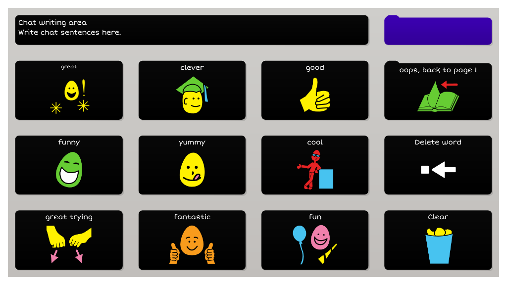 PODD is based on the paper templates for the Pragmatic Organisation Dynamic Display (PODD) communication book. It parallels the one-page PODDs with expanded functions. The grid set development has been checked, modified and amended at every step by Gayle Porter, the creator of PODD. PODD 15 school has similar range and placement of vocabulary to the 12 expanded functions PODD communication book. Predictably associated vocabulary supports the production of 3-4 key-word sentences. The PODD 15+ versions include the range of vocabulary included in the 20 expanded functions PODD communication book. This grid set also has extra predictably associated vocabulary for partners to use to produce more grammatically complete sentences. Predictably associated vocabulary is located on automatically closing pages linked from a single cell.