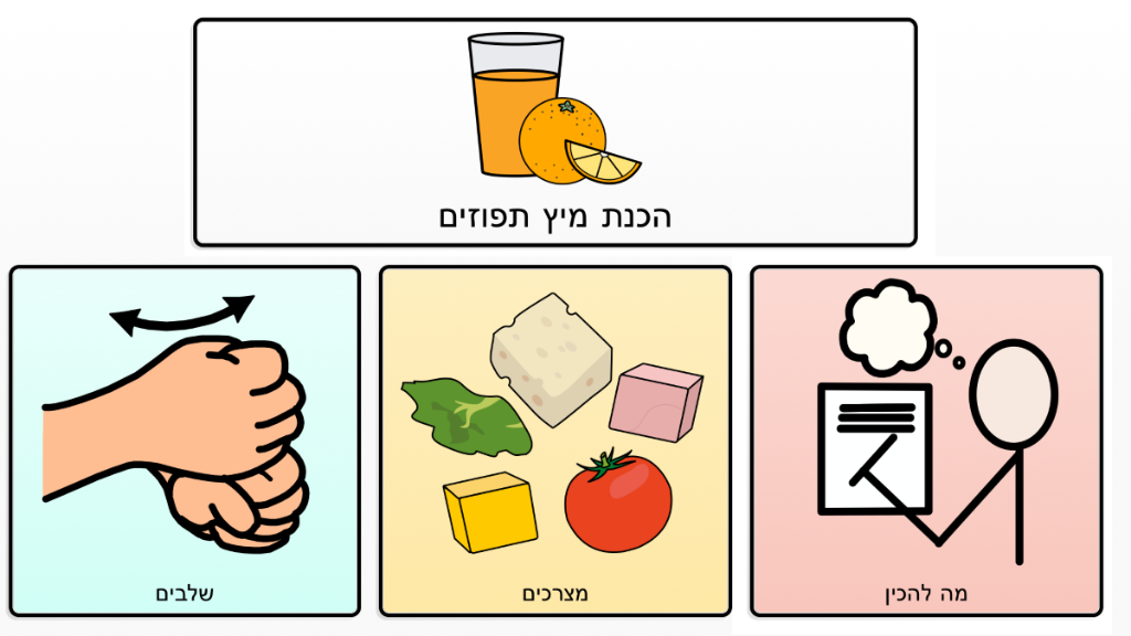לוח הכנת שלבי מיץ תפוזים בית ספר אגם