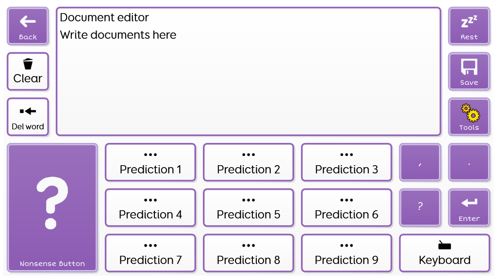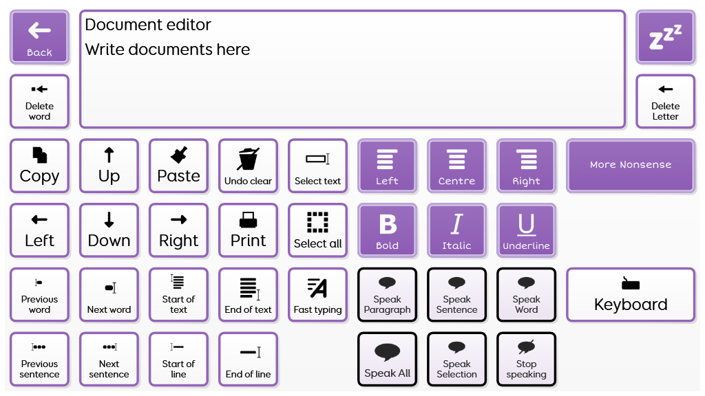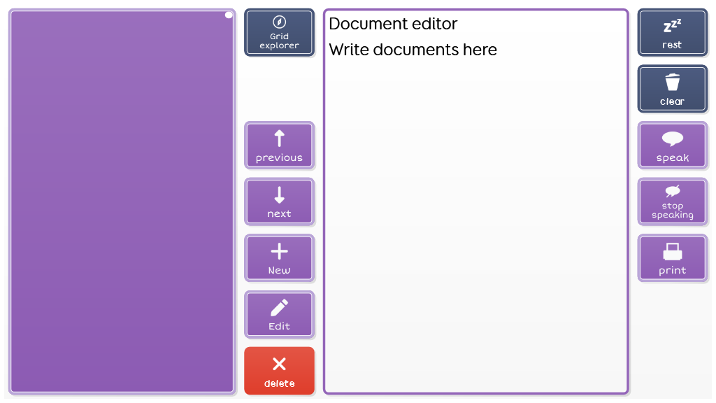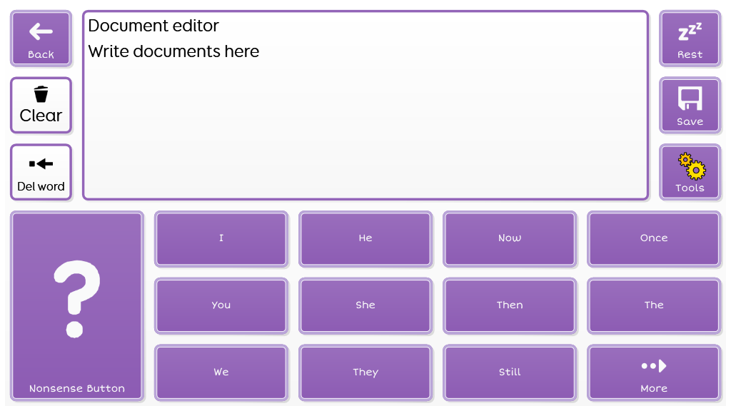 A grid that encourages the creation of nonsense poetry in the style of Lewis Carroll or Edward Lear. Allows the saving, editing and reciting of created poems. Warning: may gradually add words that are not words into Grid's predictions.