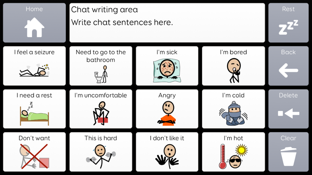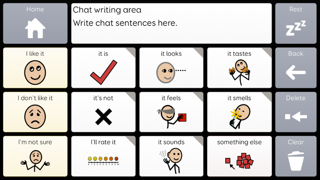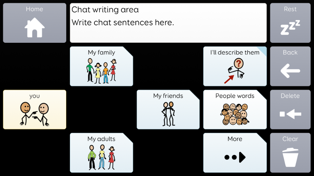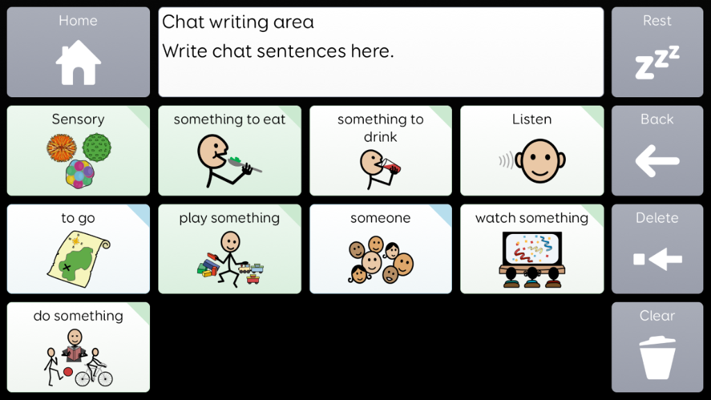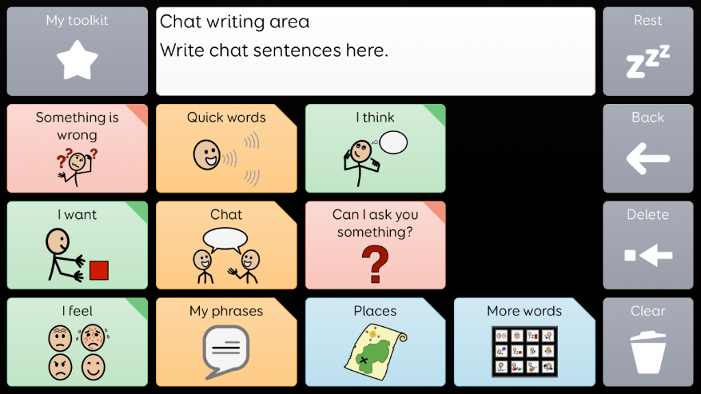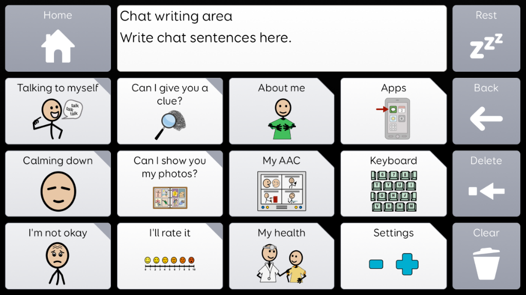 Voco Chat is a low-cell count symbol vocabulary, designed to enable users to communicate for a wide range of reasons. Message pathways, with built-in jumps and carefully selected vocabulary, provide a supported approach to language. The grid set includes resources for supporting communication and emotional wellbeing, with apps such as Symoji and Camera to support interaction and engagement. Voco Chat is suitable for anyone who needs larger cells, and can be used with touch, eye gaze, pointer and switches. Auditory prompts are included for both columns and individual cells. When you add Voco Chat for the first time, you can select either ‘Child’ or ‘Teen and Adult’ in order to choose the most appropriate vocabulary for the user. v1.05
