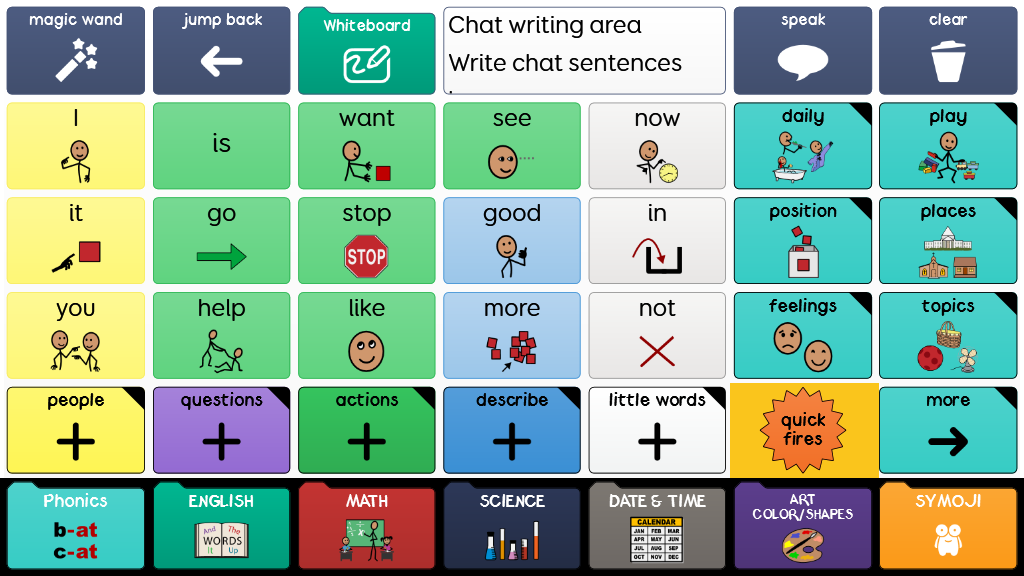Super Core 30 has the exact same vocabulary as Super Core 50, and is available for users who need fewer and larger cells on each grid. Words may take more selections to get to, but they will be easier for some users to select. Laken. Cook. Demo. This easy-to-use core vocabulary is designed to help early AAC users experience success with symbol communication. It combines a consistent core vocabulary with context specific language, focusing on daily routines and play activities to keep communication meaningful and motivating! Super Core is designed to provide functional yet simple vocabulary, that supports language, learning and literacy development. It is grounded in research, and was developed by Smartbox Speech and Language Therapist Daisy Clay. Version 2.09 LAKEKN. MOORE PEDS. COOK. DEMO. LOGAN. STARNYHORN