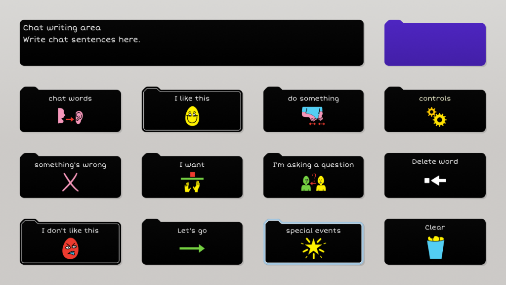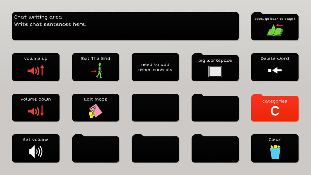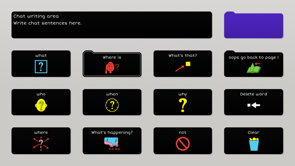 PODD is based on the paper templates for the Pragmatic Organisation Dynamic Display (PODD) communication book. It parallels the one-page PODDs with expanded functions. The grid set development has been checked, modified and amended at every step by Gayle Porter, the creator of PODD. PODD 15 school has similar range and placement of vocabulary to the 12 expanded functions PODD communication book. Predictably associated vocabulary supports the production of 3-4 key-word sentences. The PODD 15+ versions include the range of vocabulary included in the 20 expanded functions PODD communication book. This grid set also has extra predictably associated vocabulary for partners to use to produce more grammatically complete sentences. Predictably associated vocabulary is located on automatically closing pages linked from a single cell.