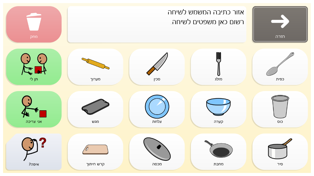 דיבור בסמלים א' היא מערכת תקשורת מלאה המיועדת למשתמשים הנעזרים בסמלים לצורך תקשורת. המערכת מכילה לוחות רבים בינהם לוחות להבעת דיעה ודפים לשימוש בבית, בבית הספר ואצל מטפלים.