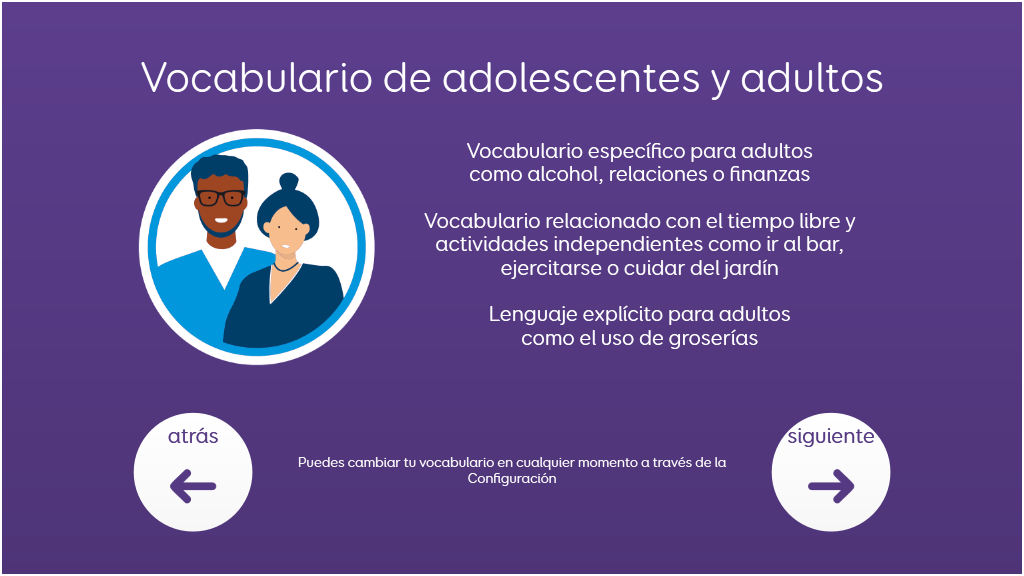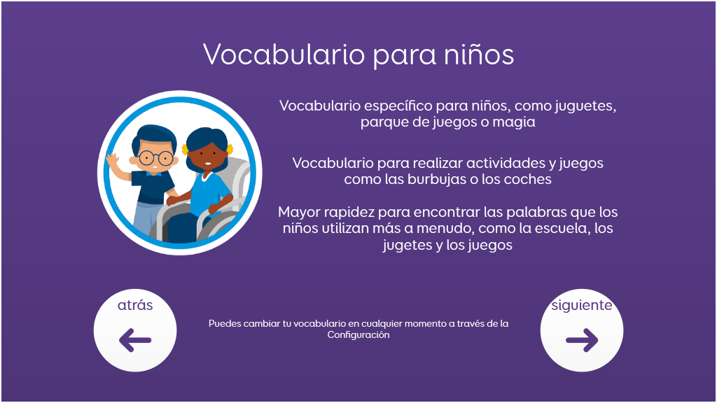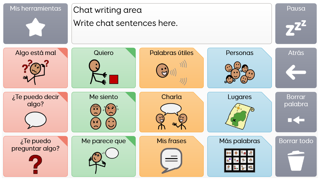 Voco Chat es un vocabulario de símbolos con número reducido de celdas, diseñado para permitir a los usuarios comunicarse por varias razones. Las secuencias de mensajes, con saltos incorporados y vocabulario cuidadosamente seleccionado, brindan un apoyo al lenguaje, y el paquete de cuadrículas incluye recursos para promover la comunicación y el bienestar emocional, además de aplicaciones como Symoji y Camera que facilitan la interacción y la motivación. Voco Chat es adecuado para cualquier persona que necesite celdas más grandes y se puede utilizar con pantalla táctil, mirada, puntero y pulsadores. Incluye indicaciones auditivas tanto para columnas como para celdas individuales. Al añadir Voco Chat por primera vez, puedes seleccionar "Niño/a" o "Adolescente y adulto" para elegir el vocabulario más apropiado para el usuario. v1.05
