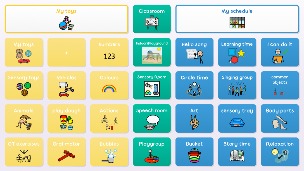 The Super Core Learning grids offer a gentle progression to the full Super Core symbol vocabulary, and an opportunity to build confidence with symbol AAC. They include all of the daily and play activity vocabulary from Super Core, alongside a simplified core vocabulary with a lower cell count of 12 and 20 cells. This version contains Widgit Symbols. Versions are also available in Picture Communication Symbols (PCS) Classic and high contrast symbols. v2.03