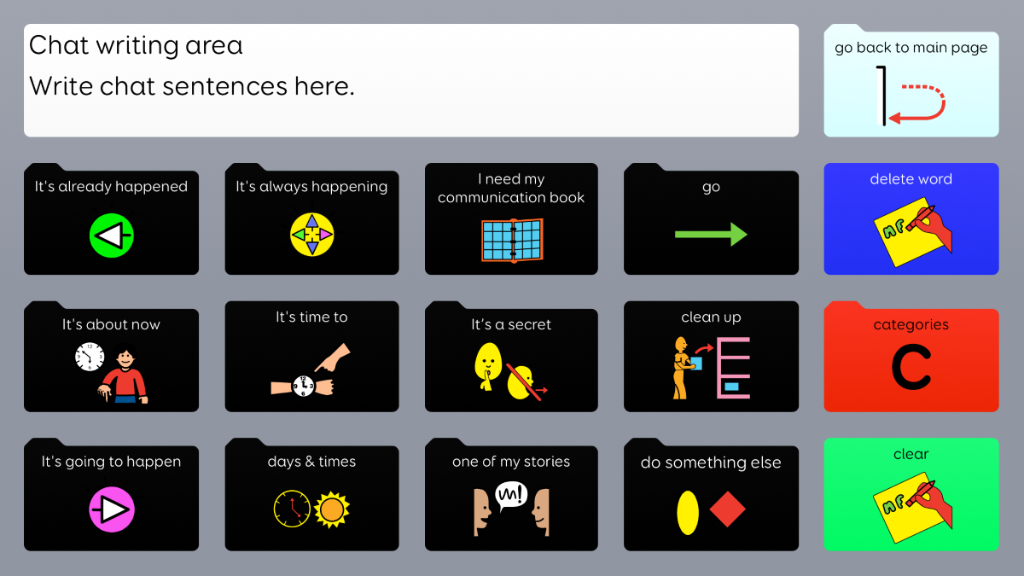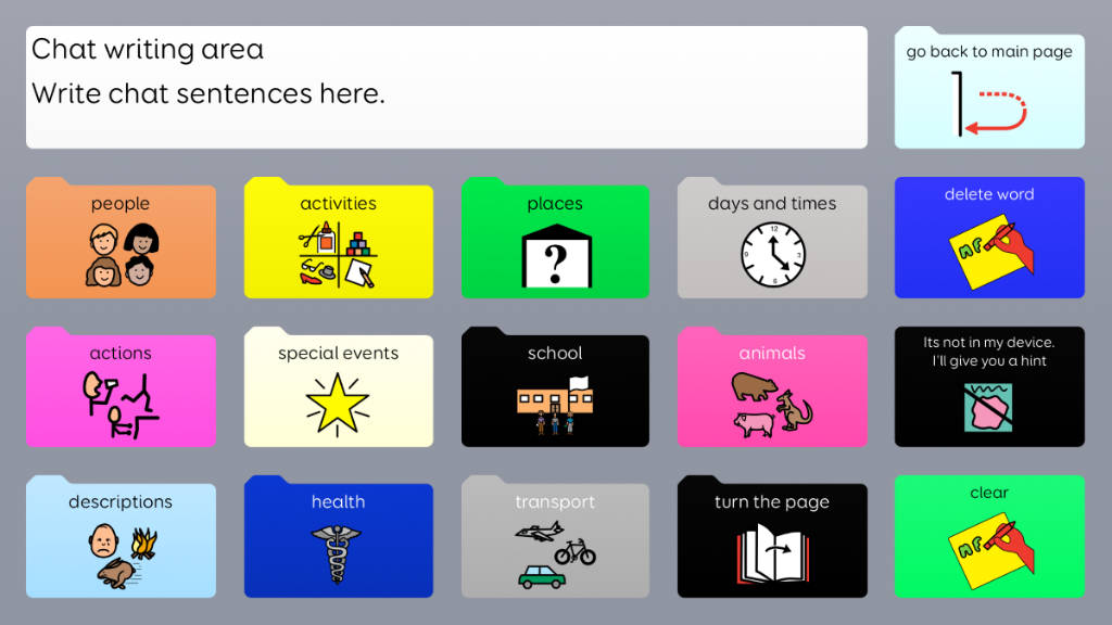 Designed for children who are just beginning their communication journey, with school-specific vocabulary grids for school subjects and topics. Vocabulary and organisation are most similar to the 12 per page expanded functions PODD books. PODD for Grid has been developed in collaboration with Gayle Porter, creator of PODD. An alternative version of this grid set is available for eye gaze access in Grid 3. v2.01