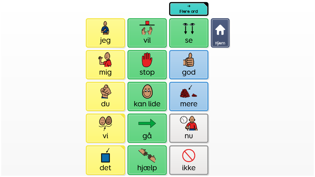Lille kommunikationsbog klar til print. Lavet til skolebrug. Ønsker du at tilpasse den, så rediger ordene inden du printer. Print direkte fra Grid, klip ud, laminer og hav bogen med dig som kommunikationsbog til modellering "på farten".