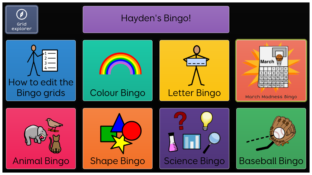 This Bingo grid set allows students to participate in Bingo for a range of topics: colours, shapes, letters, numbers and animals. Each Bingo game can be easily edited using word lists. As students select an item they have, the word is then greyed out.