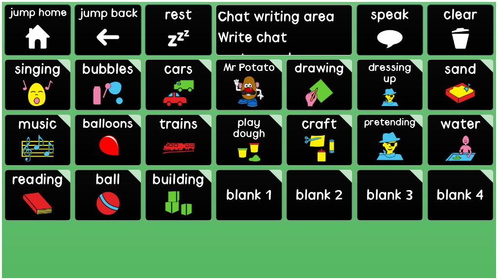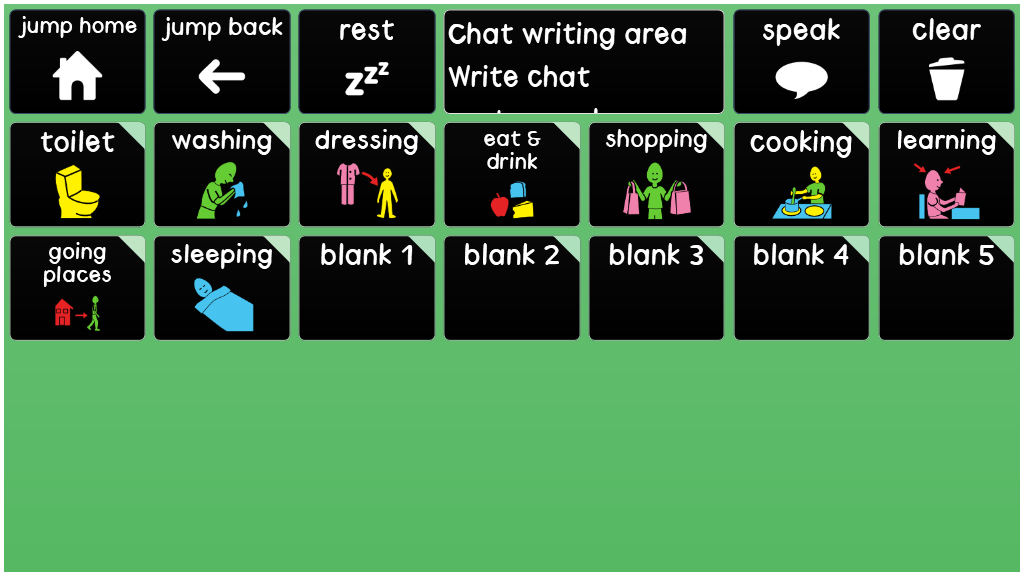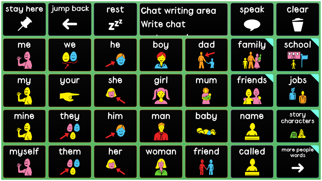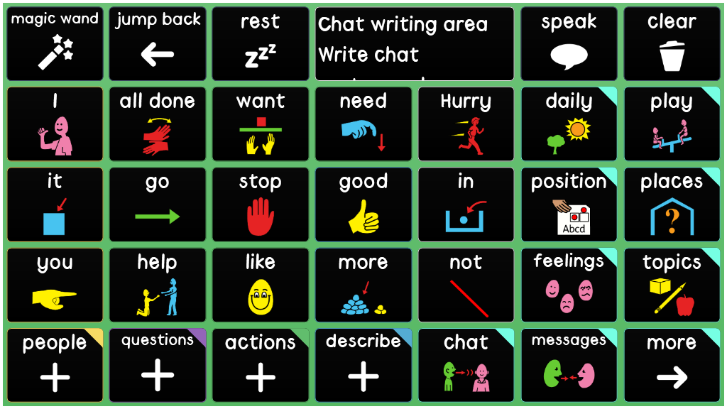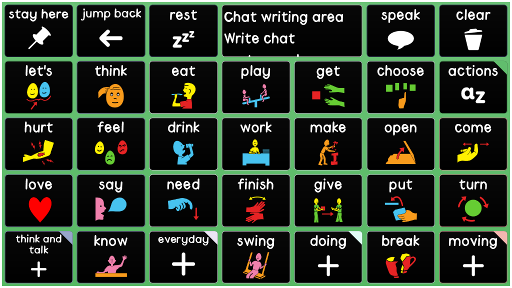 Super Core 30 gridset with PCS High Contrast symbols. (This is not suitable for all AAC Users with CVI- please seek advice from a VI specialsit before using.) (This is still in draft form- the symbols in the Word Lists have not yet been adapted.)