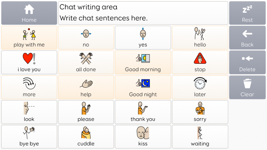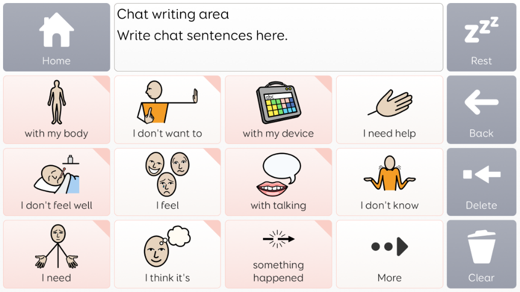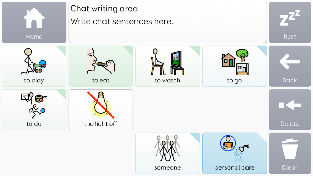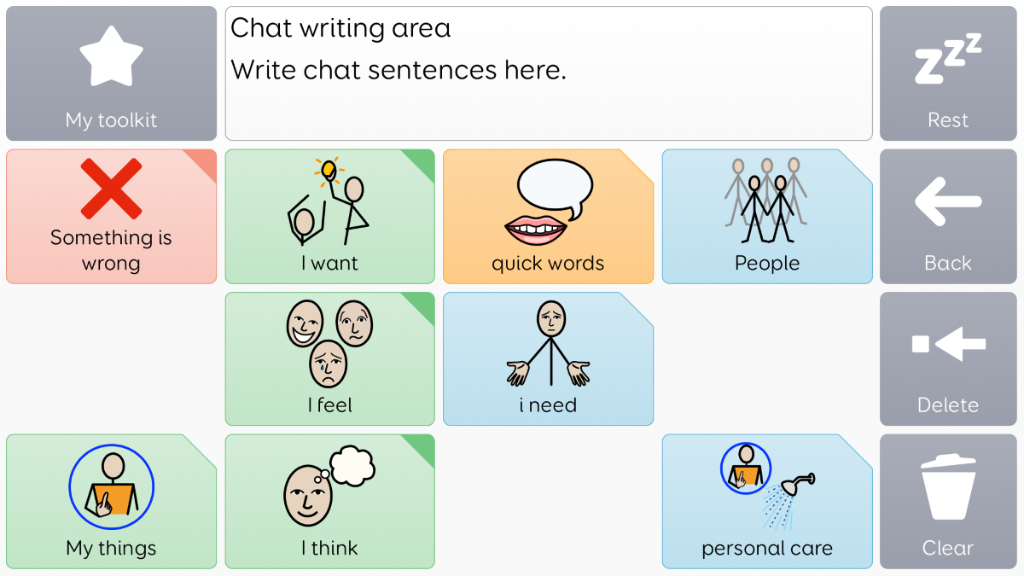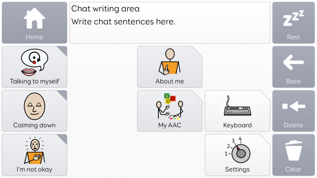 Voco Chat is a low-cell count symbol vocabulary, designed to enable users to communicate for a wide range of reasons. Message pathways, with built-in jumps and carefully selected vocabulary, provide a supported approach to language. The grid set includes resources for supporting communication and emotional wellbeing, with apps such as Symoji and Camera to support interaction and engagement. Voco Chat is suitable for anyone who needs larger cells, and can be used with touch, eye gaze, pointer and switches. Auditory prompts are included for both columns and individual cells. When you add Voco Chat for the first time, you can select either ‘Child’ or ‘Teen and Adult’ in order to choose the most appropriate vocabulary for the user. v1.05