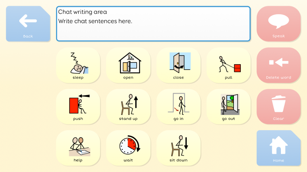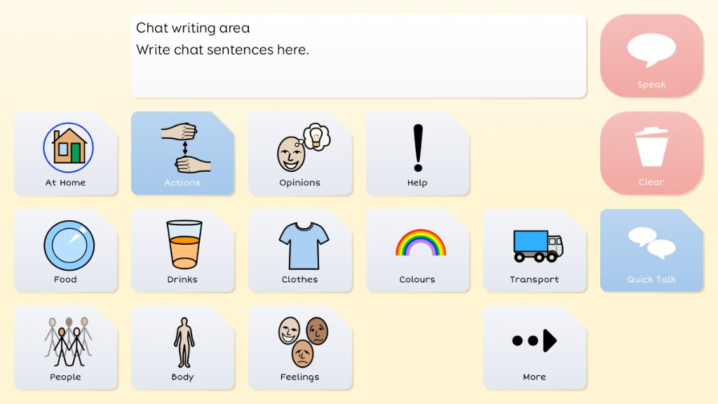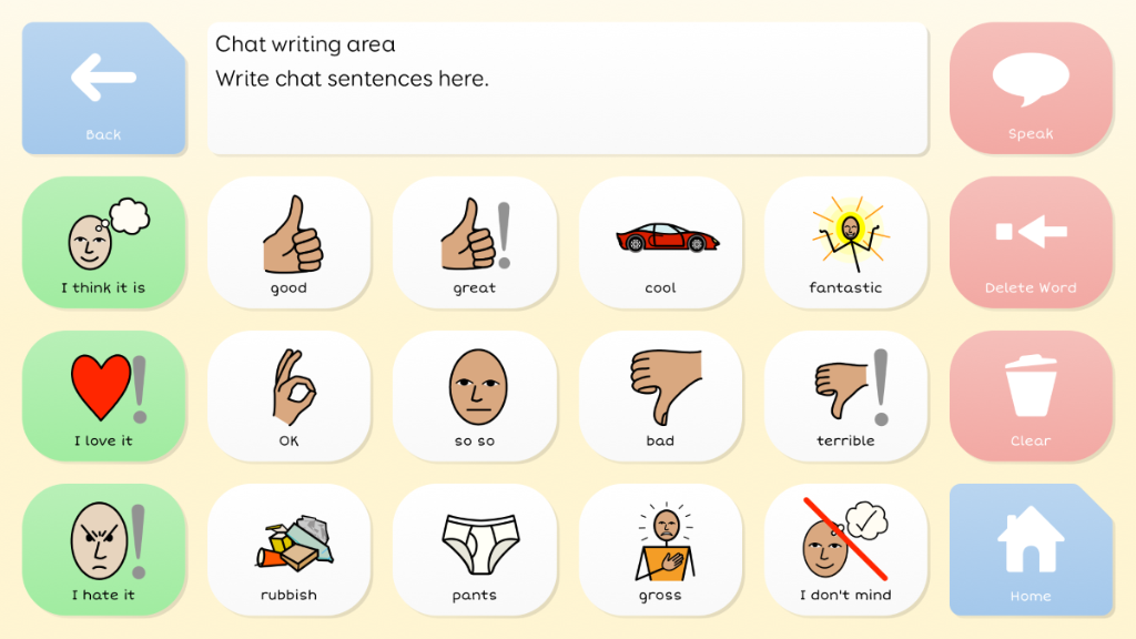 Symbol Talker is a complete vocabulary package for someone who wishes to use symbols to talk. It has pages to prompt opinions, as well as pages for School, Home and Therapy use.
