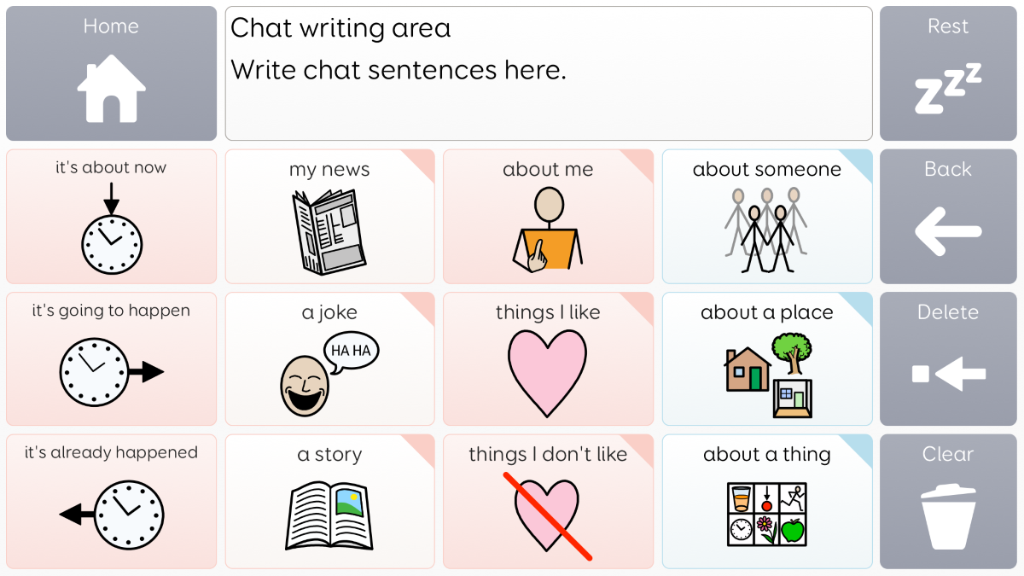 This Voco Chat package has been added for stage 1 and 2 Gestalt Language Processors. The integrity of the original package has been retained, allowing for stage 3 and 4 development. 'My phrases' has been edited to include stage 1 potential gestalt phrases for a range of communicaiton intentions. Jumps have been added to these pages to allow for stage 2 'mix-and-match' phrases. The 'My phrases' section replicates Ali Battye's stage 1 GLP communication book template (see alispeech.com and ali_battye_speech on instagram for the paper-based original version and implementation ideas). Now also with 'my photos' with visual scenes: examples are given, but you should personalise these! And finally, now with a phonics keyboard and numbers 1-100 - from 'my toolkit' then 'keyboard'. Other pages have also been edited with mitigable phrases that can also be mix-and-matched. Please contact Ali Battye at ali.battye.speech@gmail.com for any further advice information about AAC and GLP.