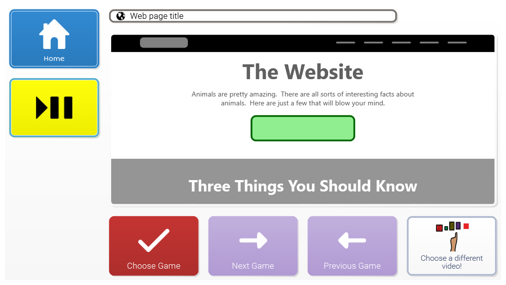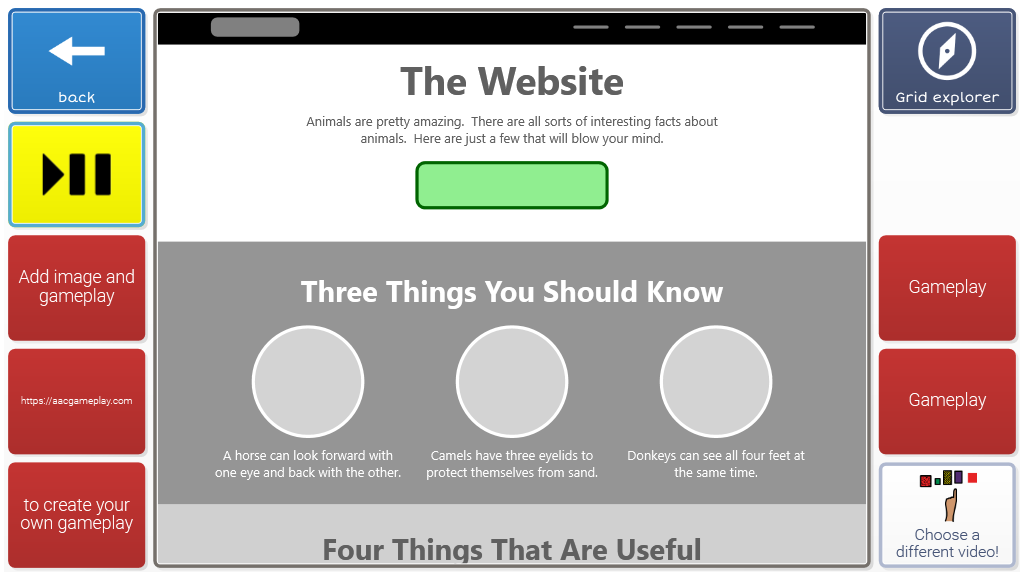 SETBC gridset for AAC GamePlay (updated Tar Heel Gameplay). This includes Home button - access to the whole AAC Gameplay libarary and buttons to save six preferred gameplays. Add additional pages as needed. Acknowledgements: JR, SLP; Shuana (online grid my visual scenes)