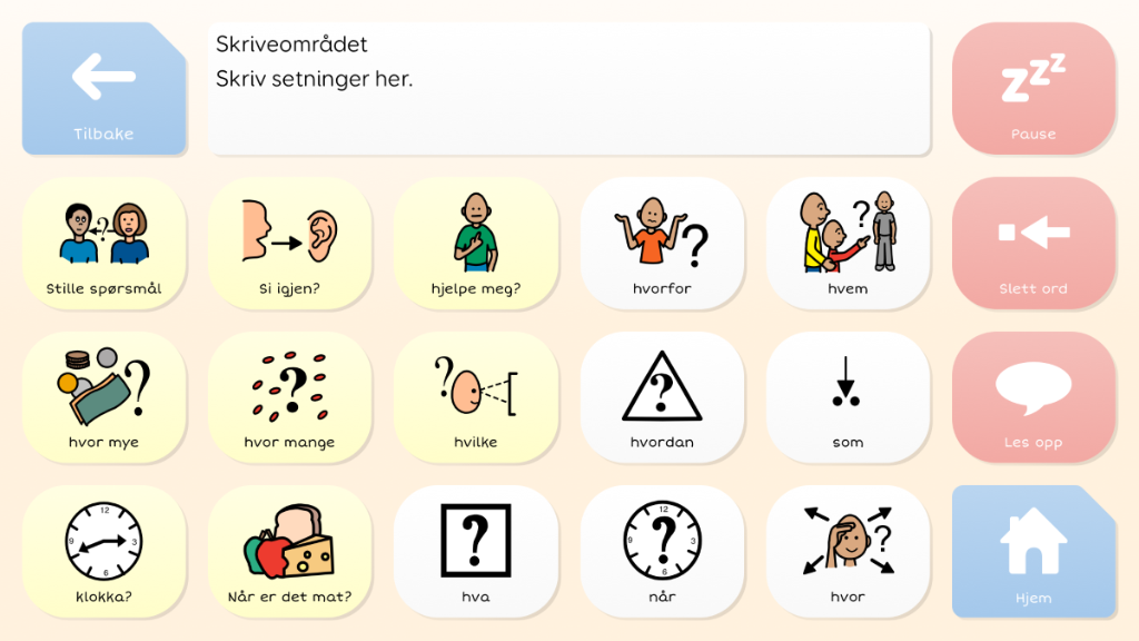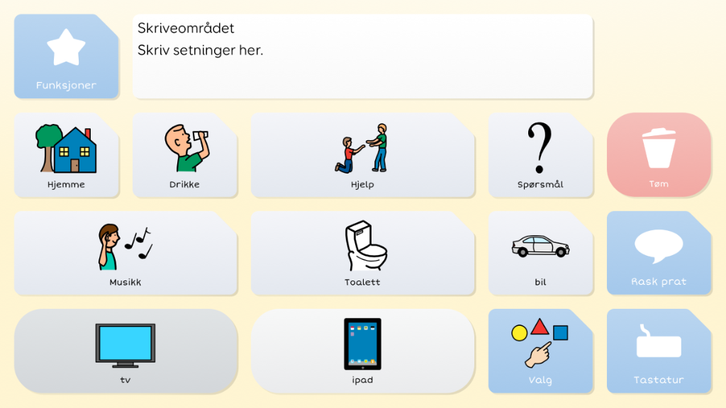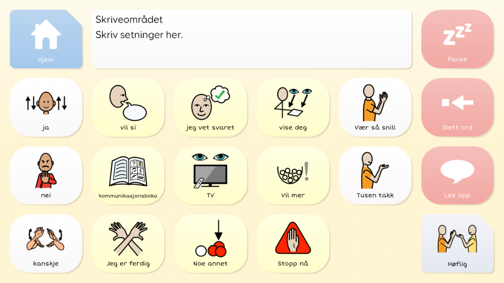 Symbol Prat er en pakke med kommunikasjonsoppsett for symbolbrukere. Her finner du sider for å uttrykke meninger, samt sider som omhandler ulike tema som skole, hjem, trening og mye mer.