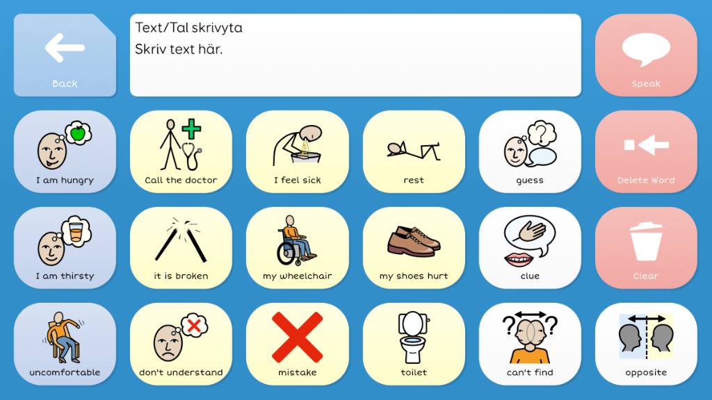 A topic based vocabulary for beginning AAC users. On each topic grid, users can build simple sentences from one or two selections, using sentence starters and topic words. Grid size is 6x3