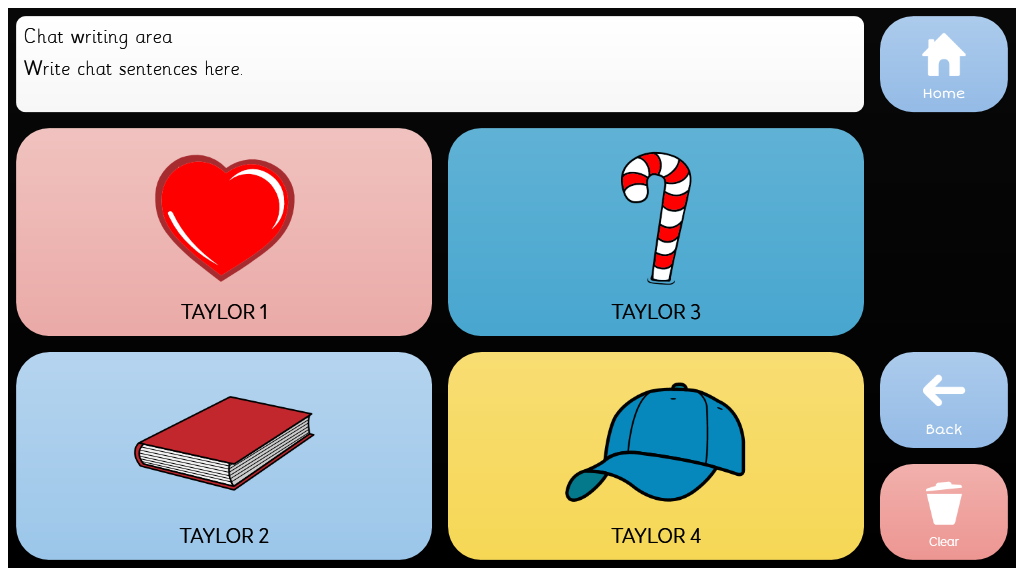 Symbol Talker is a complete vocabulary package for someone who wishes to use symbols to talk. It has pages to prompt opinions, as well as pages for School, Home, and Therapy use.