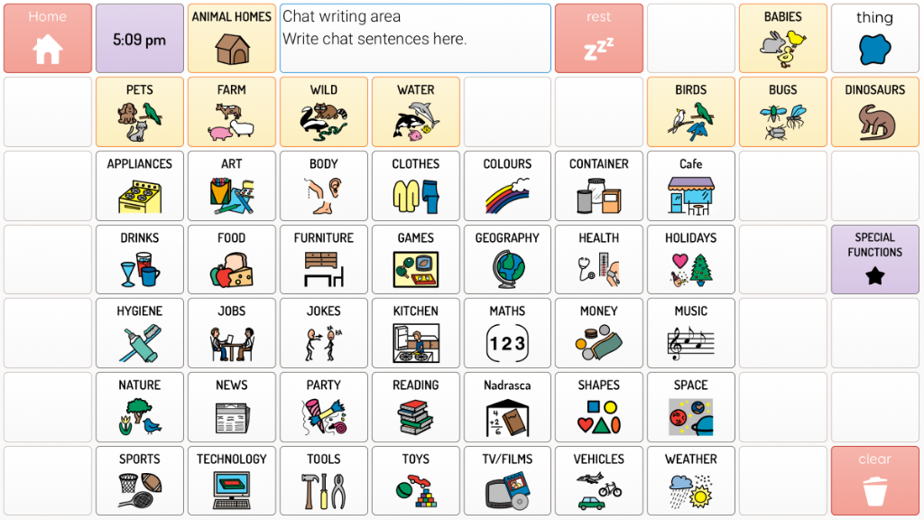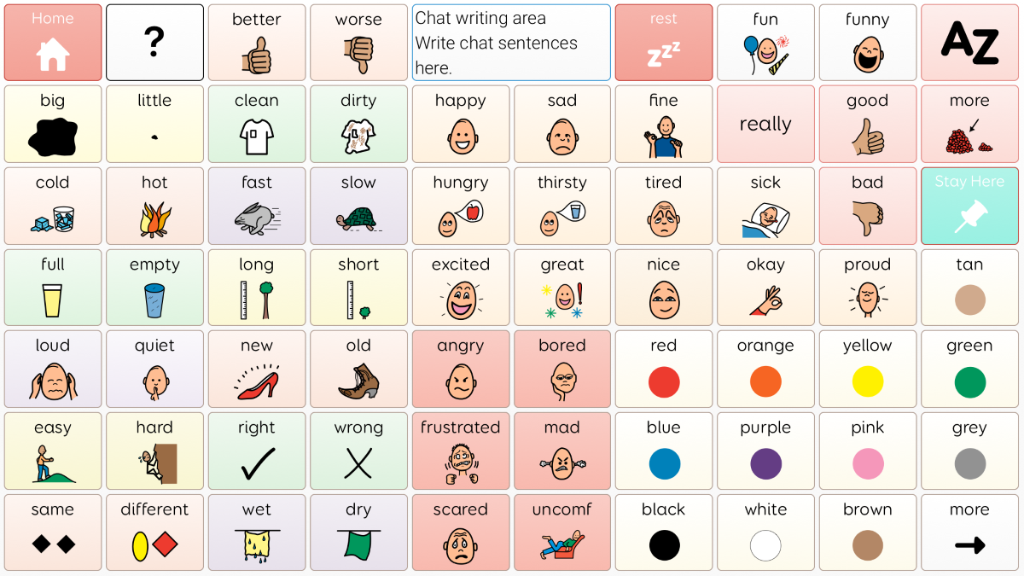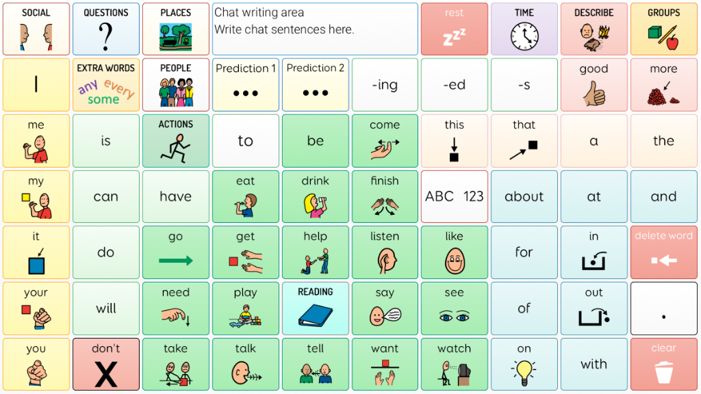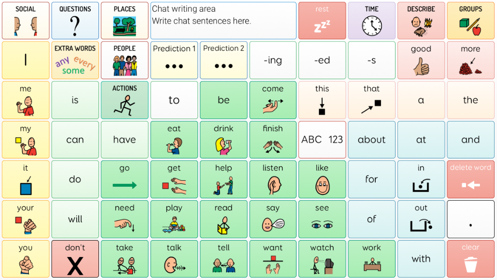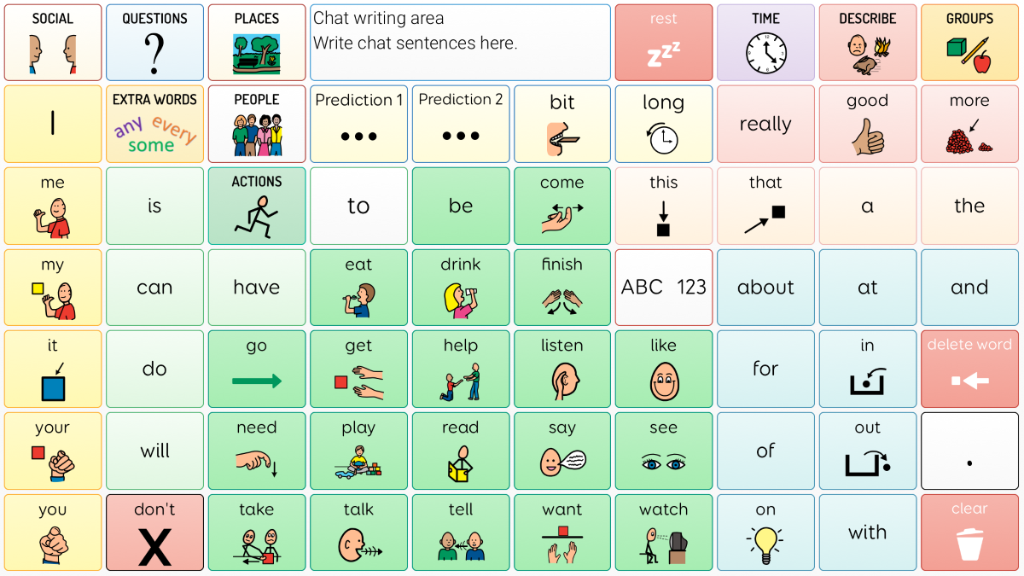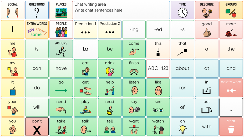 WordPower 60 by Nancy Inman combines the features of core vocabulary, spelling and word prediction. Complex sentences can be generated quickly and efficiently using core words, suggested next words, smart grammar and dynamically linked pages. Accessible apps pages are included for email, text, environment control etc. This grid set offers the same vocabulary as WordPower 100 to individuals who require fewer or larger cells, or who are at an earlier level of language development. WordPower 60 offers users symbol support for many words, alongside the use of whole words to support sight reading and recognition of high frequency core words which are often more difficult to clearly represent using symbols. This version of WordPower 60 uses Picture Communication Symbols. A Widgit Symbols version is also available. v1.03