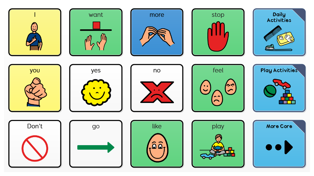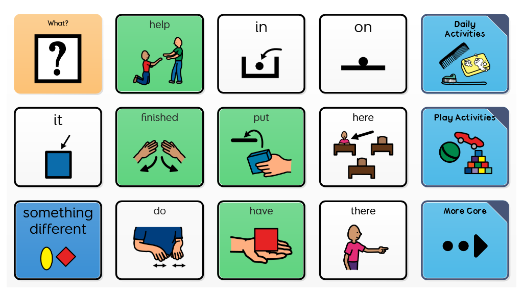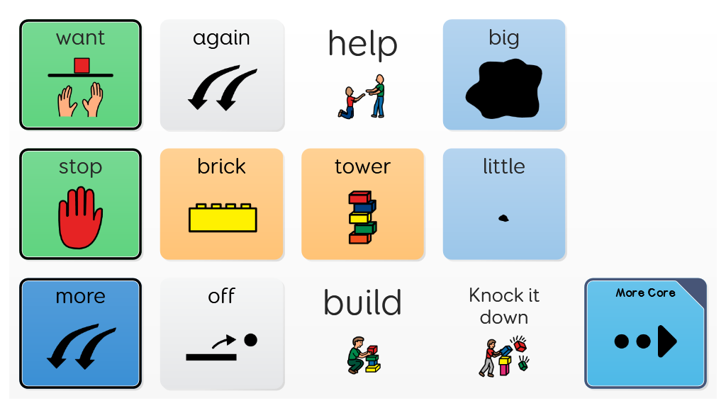 The Super Core Learning grids offer a gentle progression to the full Super Core symbol vocabulary, and an opportunity to build confidence with symbol AAC. They include all of the daily and play activity vocabulary from Super Core, alongside a simplified core vocabulary with a lower cell count of 12 and 20 cells. This version contains Picture Communication Symbols. A Widgit Symbols version is also available. v1.1.4