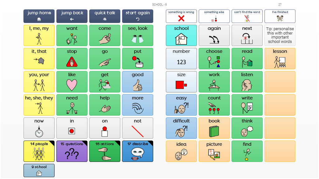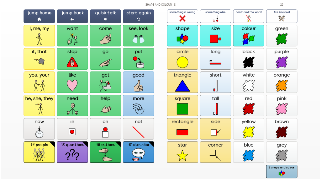 Super Core Printable Books are grid sets based on the Super Core language system, designed to be personalised within Grid software. Once printed, cut out and assembled, they form paper-based communication books which can be used anytime, anywhere. Printable books contain consistent core words, language for daily and play activities and short phrases. Find guidance on personalising and printing them on the Smartbox Hub. This grid set contains vocabulary tailored to children and forms a single sided book with 6x8 cells, that is quicker to assemble and easier to personalise. Note: Ensure you are using Grid version 93 for the latest print settings. v 1.0
