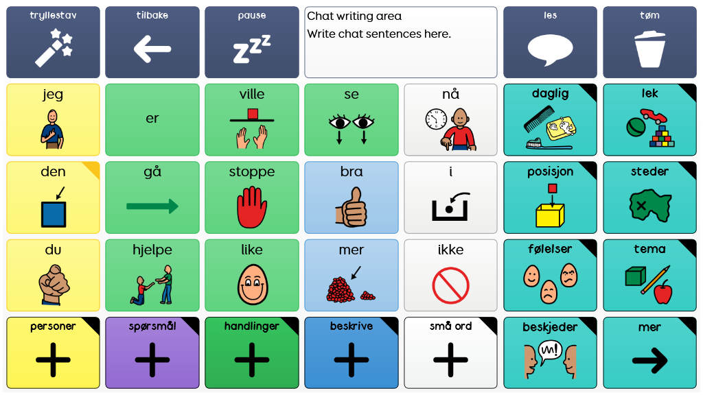 Dette brukervennlige kjernevokabularet er utviklet for å hjelpe ASK-brukere til å oppleve suksess med sin symbolkommunikasjon. Den kombinerer et konsekvent kjernevokabular med kontekstspesifikk språk, med fokus på daglige rutiner og lekeaktiviteter for å holde kommunikasjonen meningsfull og motiverende!