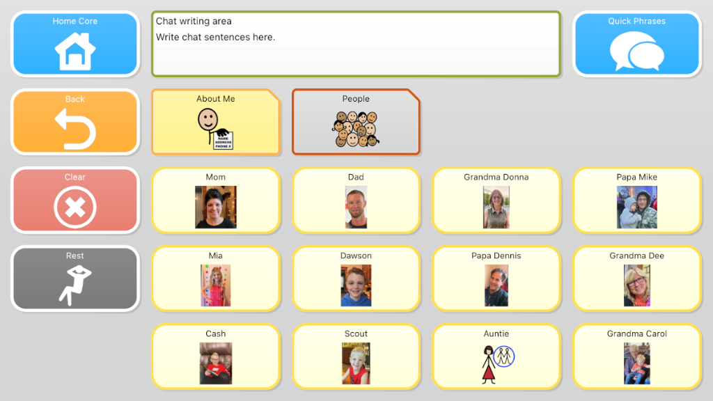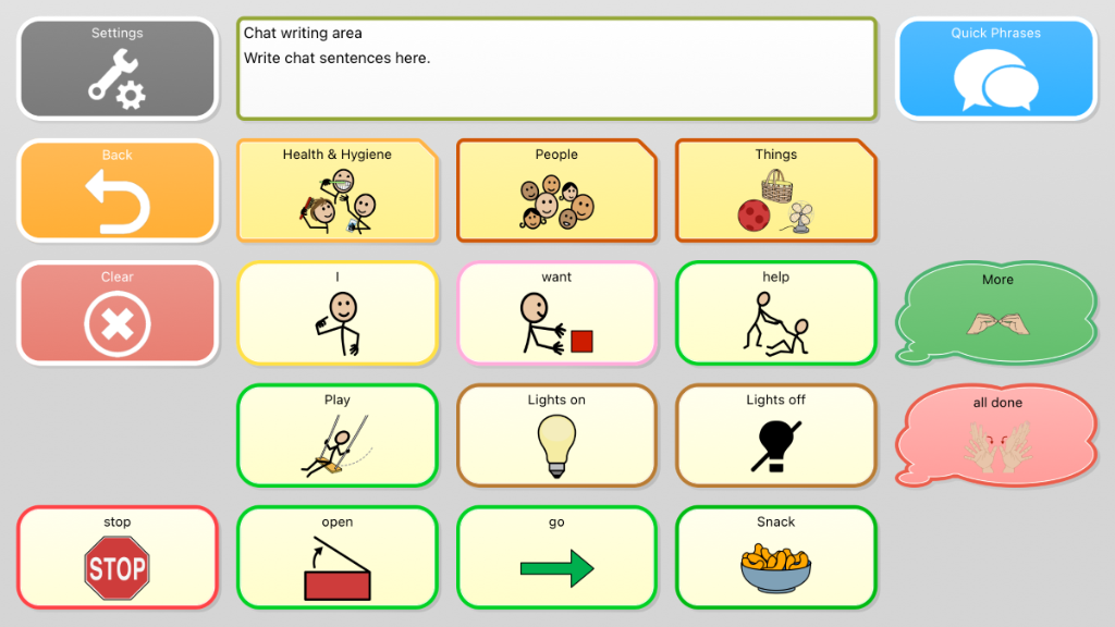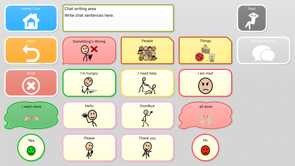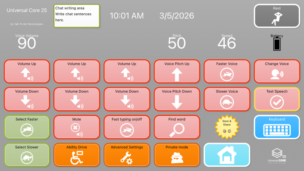 Universal Core 25 v4.2! Research based and field tested with emergent AAC communicators, SLPs, and families! Universal Core is designed to promote learning and access to language easily and confidently. Navigation provides one-button access to 40, then 80 of the most frequently used words in the English language. Core words are combined with an endless array of activity-specific vocabulary close by. Accelerating communication while encouraging language growth and expansion, Universal Core vocabulary sets are inspired by two things: the ground breaking research of University of North Carolina, Chapel Hill, and children everywhere who rely heavily on a vocabulary set designed to support language growth and literacy. Functional, quick, and rewarding communication is realized through this vocabulary set’s intuitive and consistent organizational pattern.