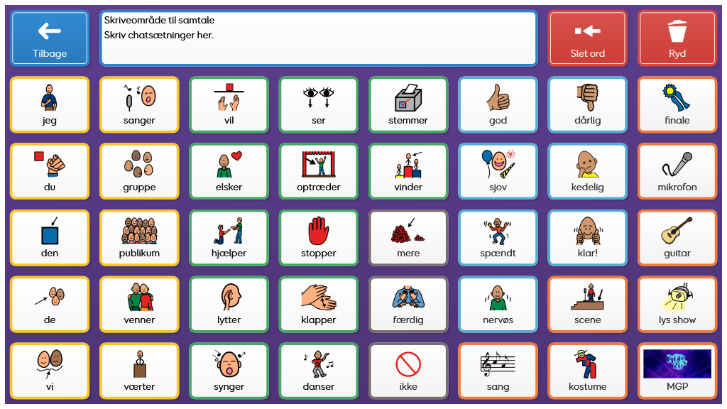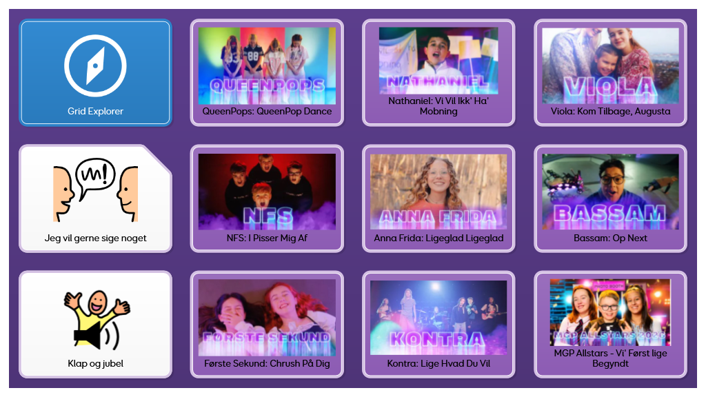 Varm op til den store MGP fest! Lyt til sangene og find ord til at kommunikere om MGP showet. God fest!