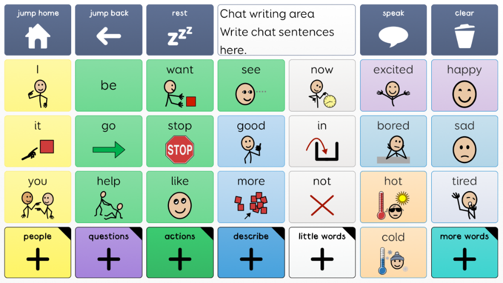 Super Core 30 has the exact same vocabulary as Super Core 50, and is available for users who need fewer and larger cells on each grid. Words may take more selections to get to, but they will be easier for some users to select. This easy-to-use core vocabulary is designed to help early AAC users experience success with symbol communication. It combines a consistent core vocabulary with context specific language, focusing on daily routines and play activities to keep communication meaningful and motivating! Super Core is designed to provide functional yet simple vocabulary, that supports language, learning and literacy development. It is grounded in research, and was developed by Smartbox Speech and Language Therapist Daisy Clay. Version 2.09