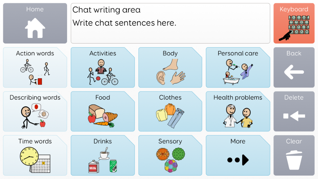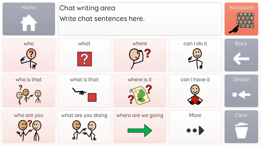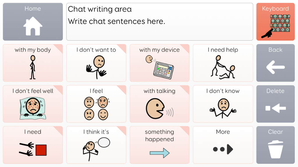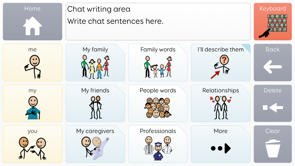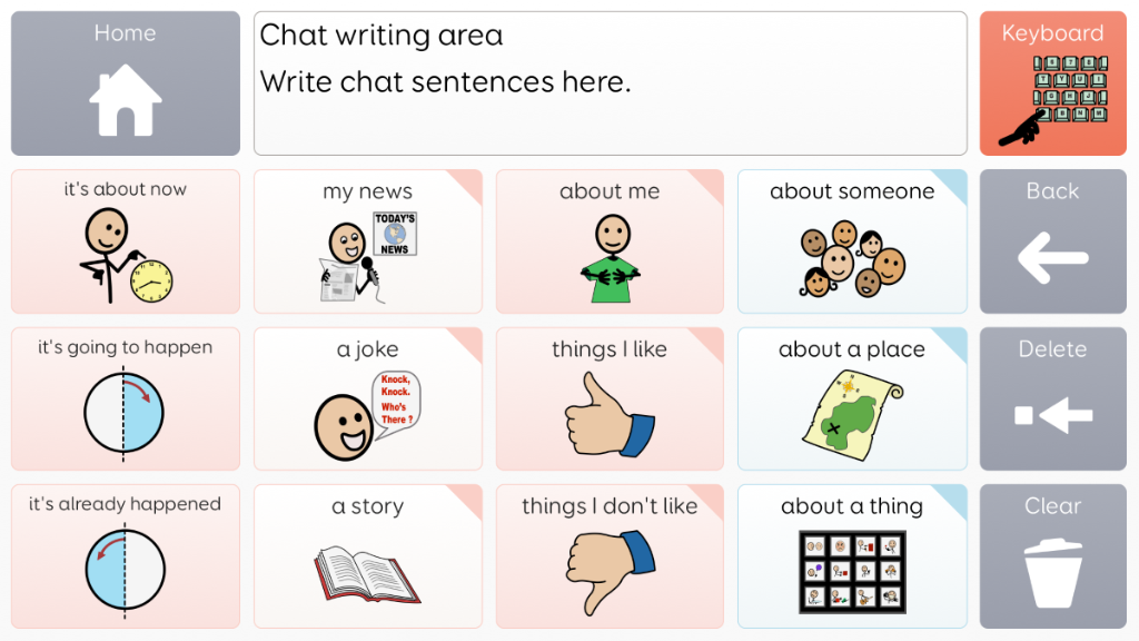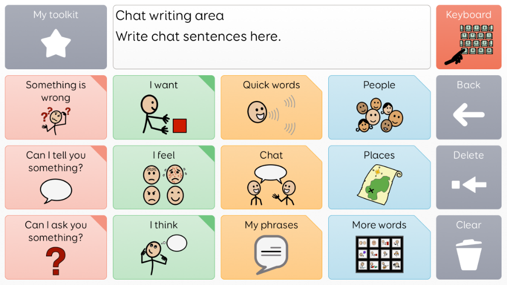 Voco Chat is a low-cell count symbol vocabulary, designed to enable users to communicate for a wide range of reasons. Message pathways, with built-in jumps and carefully selected vocabulary, provide a supported approach to language. The grid set includes resources for supporting communication and emotional wellbeing, with apps such as Symoji and Camera to support interaction and engagement. Voco Chat is suitable for anyone who needs larger cells, and can be used with touch, eye gaze, pointer and switches. Auditory prompts are included for both columns and individual cells. When you add Voco Chat for the first time, you can select either ‘Child’ or ‘Teen and Adult’ in order to choose the most appropriate vocabulary for the user. v1.05