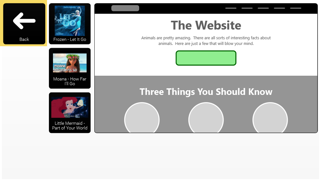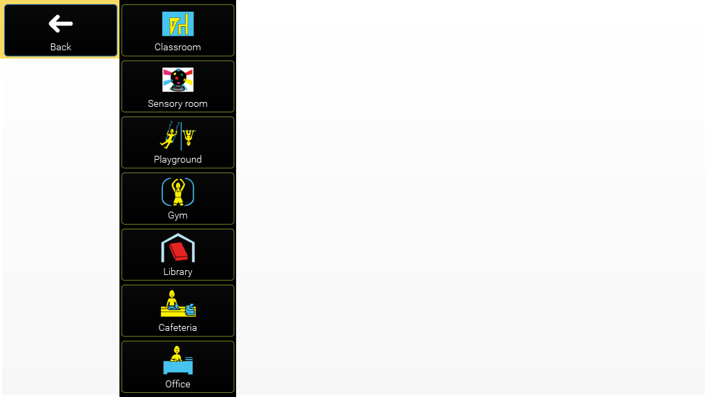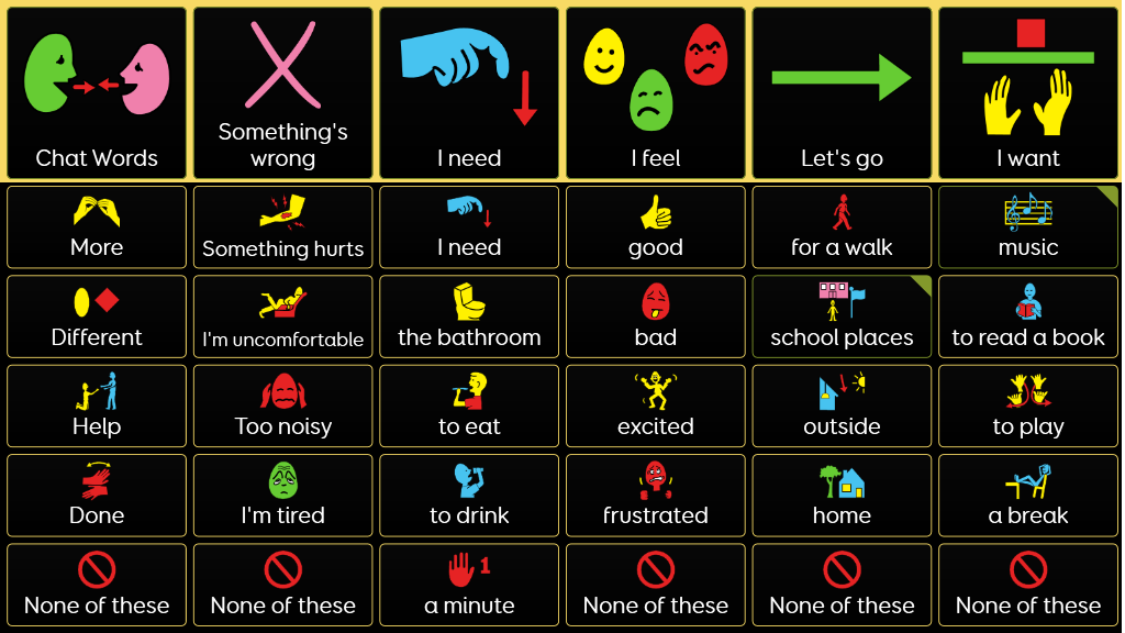 Two-step (column/row) auditory/visual scanning vocabulary inspired by PAS PODD templates.