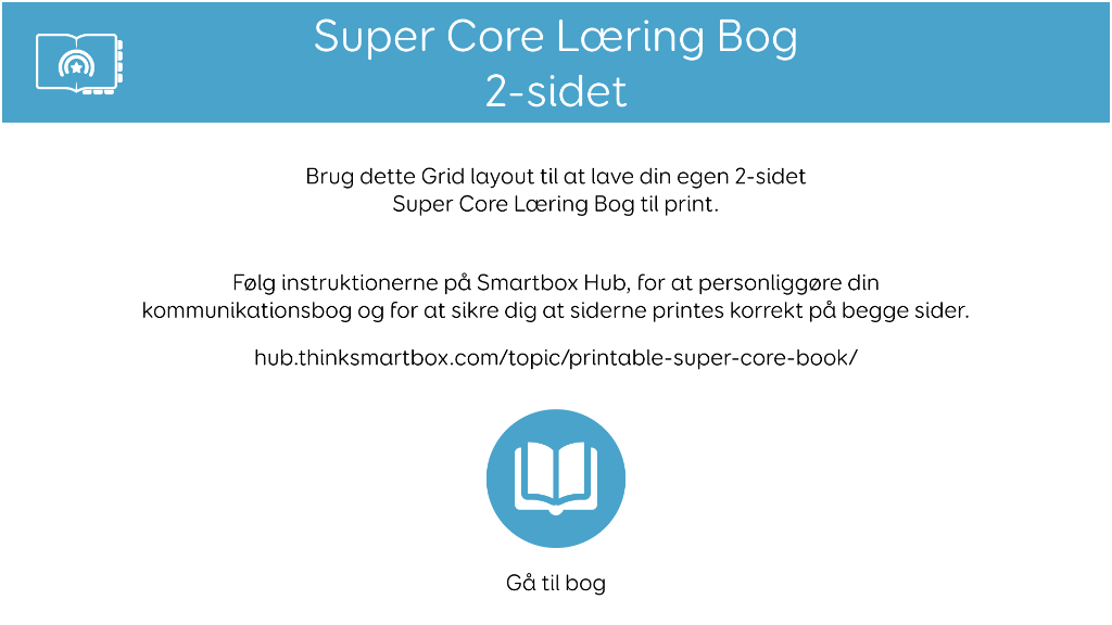 Super Core Printable Books are grid sets based on the Super Core language system, designed to be personalised within Grid software. Once printed, cut out and assembled, they form paper-based communication books which can be used anytime, anywhere. Printable books contain consistent core words, language for daily and play activities and short phrases. Find guidance on personalising and printing them on the Smartbox Hub. This grid set contains vocabulary tailored to children and forms a compact double sided book with 4x6 cells. Note: Ensure you are using Grid version 100 or above. v1.03
