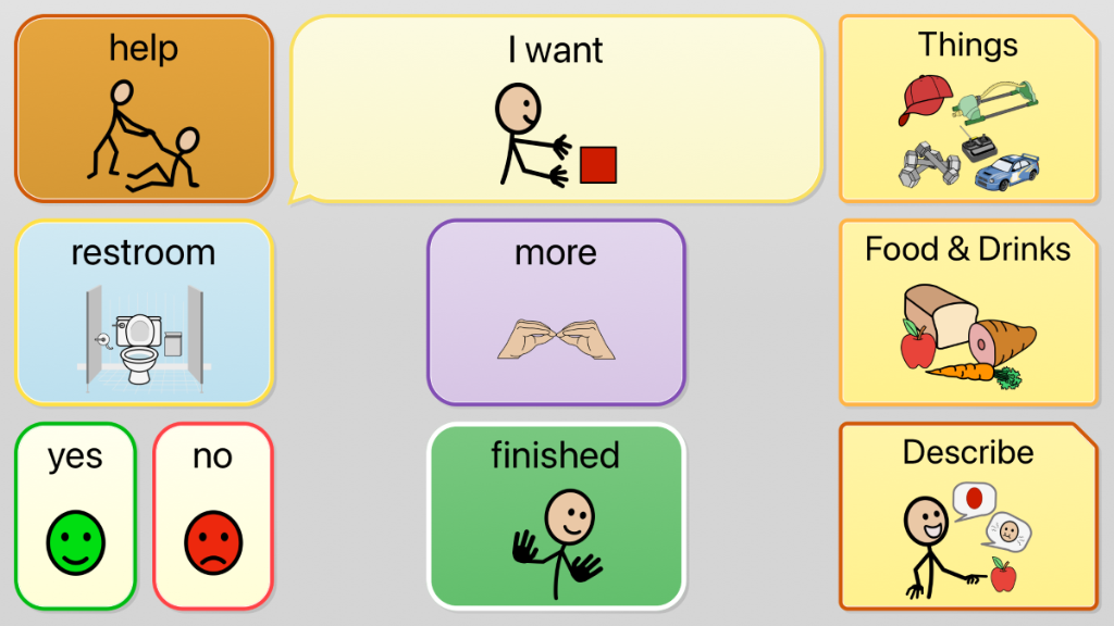 QuickStep 4 v2.2A! This powerful, progressive symbol-based user is intended for Beginning Communicators. Communicate using phrases, sentence starters, common expressions and fringe vocabulary! Functions of communication located on every page via "Phrases."