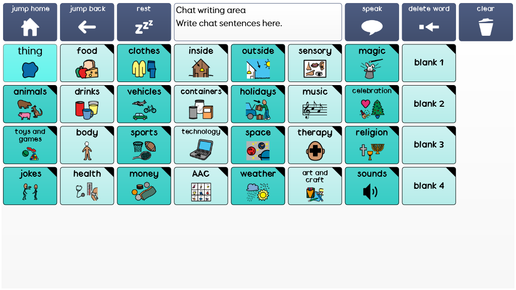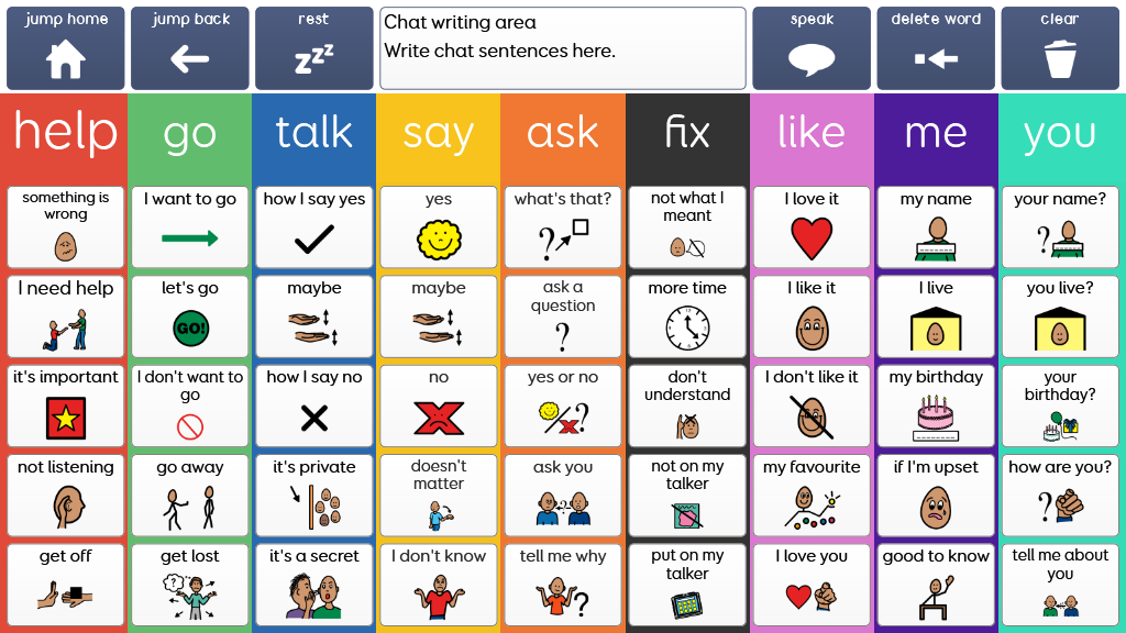 SUPER CORE 50 Super Core is an easy-to-use core vocabulary designed to help early AAC users experience success with symbol communication. It combines a consistent core vocabulary with context specific language, focusing on daily routines and play activities to keep communication meaningful and motivating! Super Core is designed to provide functional yet simple vocabulary, that supports language, learning and literacy development. It is grounded in research, and was developed by Smartbox Speech and Language Therapist Daisy Clay. Super Core is available in Widgit symbols or PCS, and is also available with larger cells (Super Core 30). Version 2.08