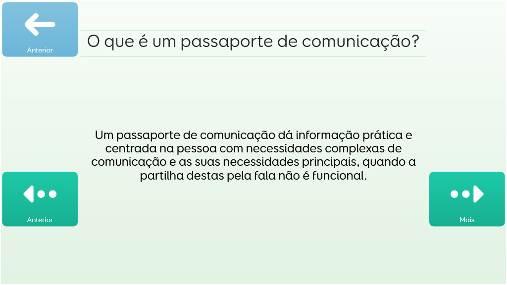 Exemplo de passaporte de comunicação para um adulto com necessidades complexas de comunicação adquiridas.