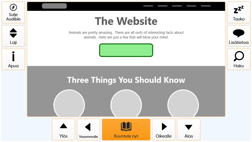 Käytä Audible- verkkoalustaa kuunnellaksesi äänikirjojasi suoraan Grid 3:ssa. Selaa kirjastoasi ja aloita kuuntelu! Audible-tili vaaditaan. Grid ruudukkoryhmä on vain soitin - uusien nimikkeiden selaaminen ja ostaminen tulee tehdä tavallisessa selaimessa. v1.0