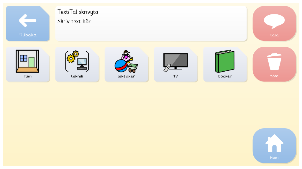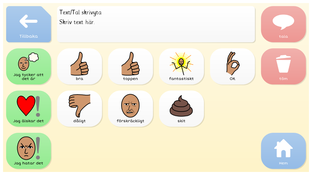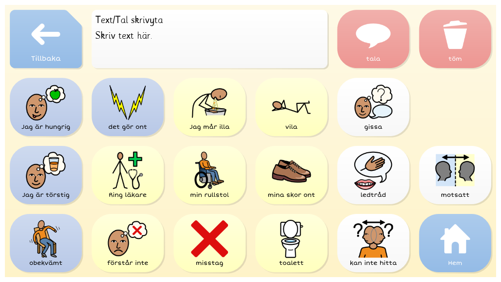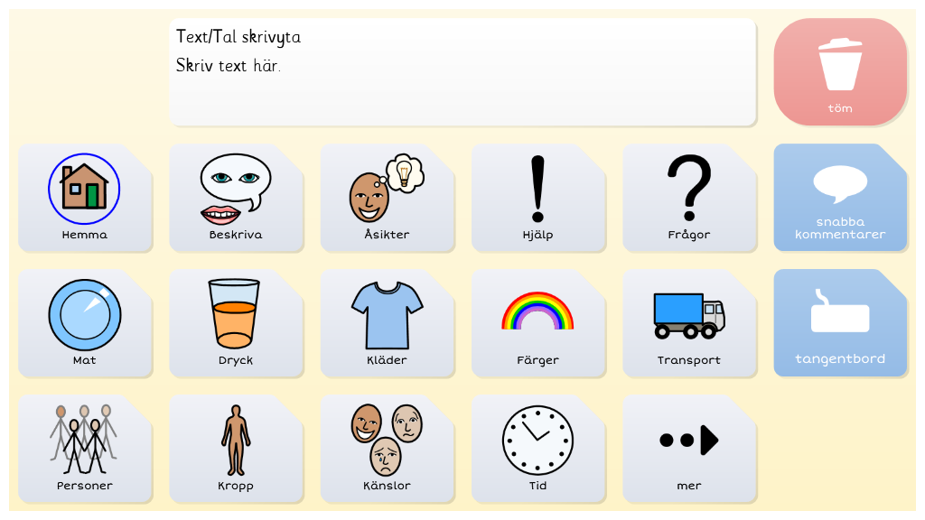 Symbol Talker A är en komplett vokabulär för en person som använder symboler för att kommunicera. Det finns sidor för att uttrycka åsikter och sidor för skola, hemma, mat och mycket mer. Redigerad version för Region Västernorrland. Med ljudande tangentbord.
