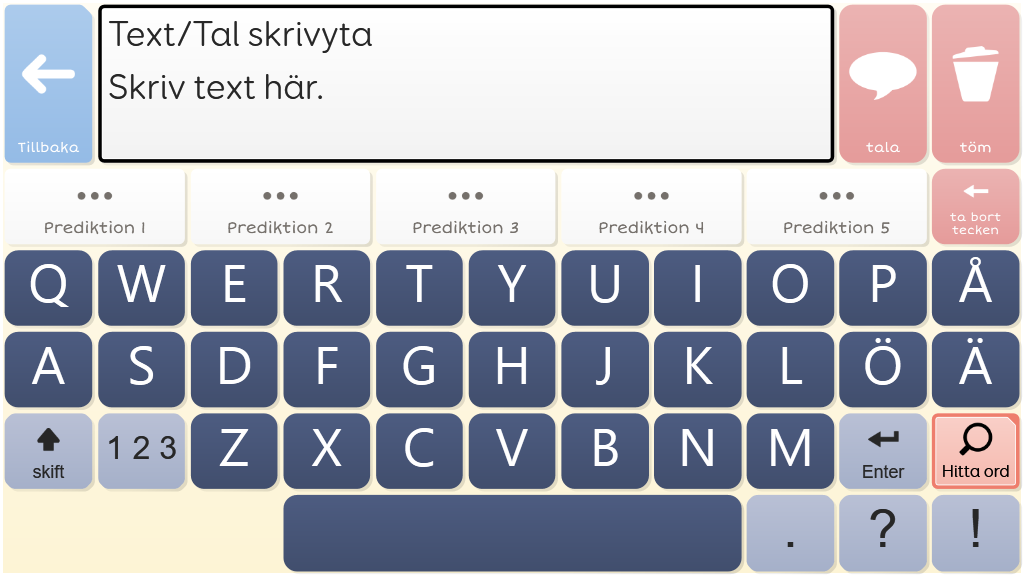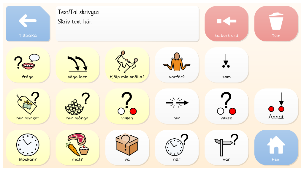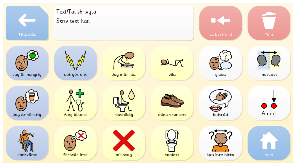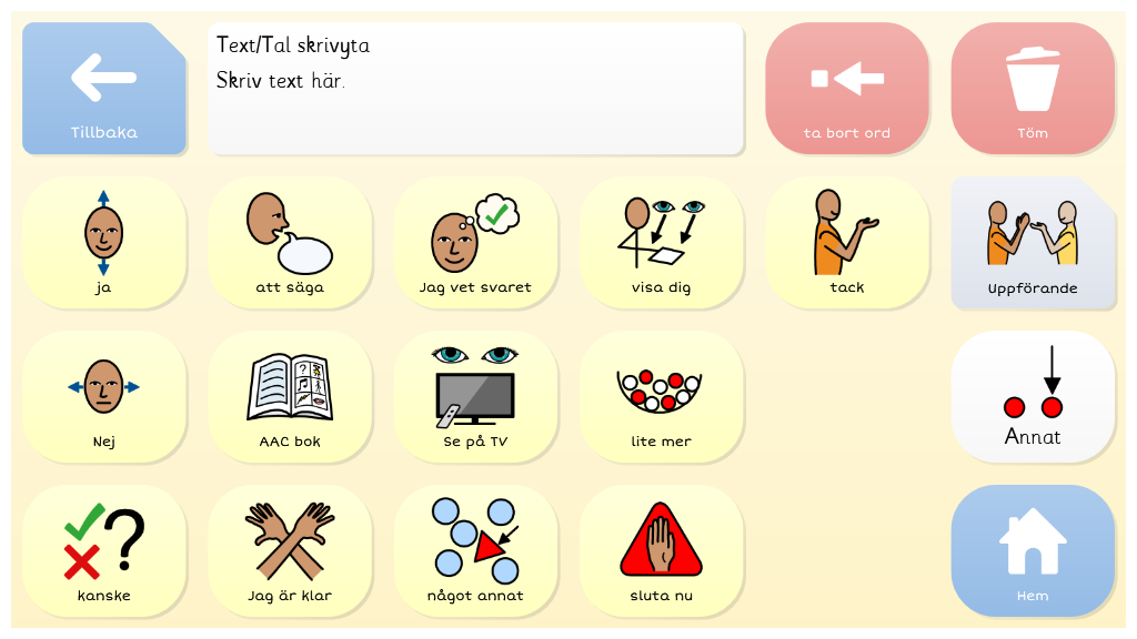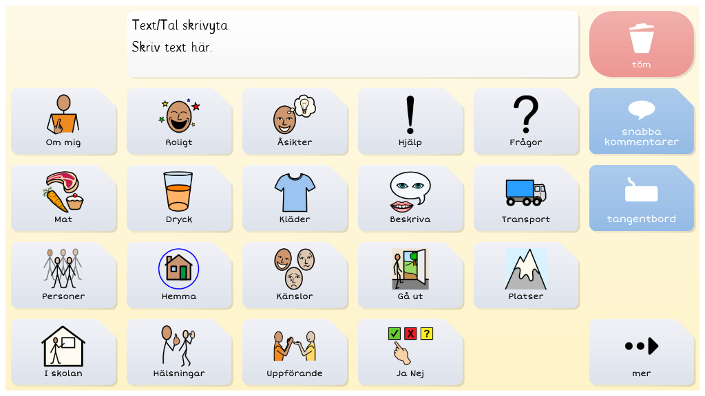 Symbol Talker A är en komplett vokabulär för en person som använder symboler för att kommunicera. Det finns sidor för att uttrycka åsikter och sidor för skola, hemma, mat och mycket mer. Redigerad version för Region Västernorrland. Anpassad för pekning. Med ljudande tangentbord.