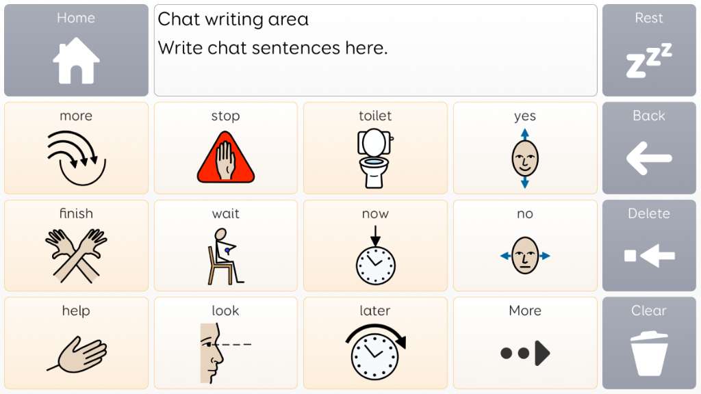 Voco Chat is a low-cell count symbol vocabulary, designed to enable users to communicate for a wide range of reasons. Message pathways, with built-in jumps and carefully selected vocabulary, provide a supported approach to language. The grid set includes resources for supporting communication and emotional wellbeing, with apps such as Symoji and Camera to support interaction and engagement. Voco Chat is suitable for anyone who needs larger cells, and can be used with touch, eye gaze, pointer and switches. Auditory prompts are included for both columns and individual cells. When you add Voco Chat for the first time, you can select either ‘Child’ or ‘Teen and Adult’ in order to choose the most appropriate vocabulary for the user. v1.01