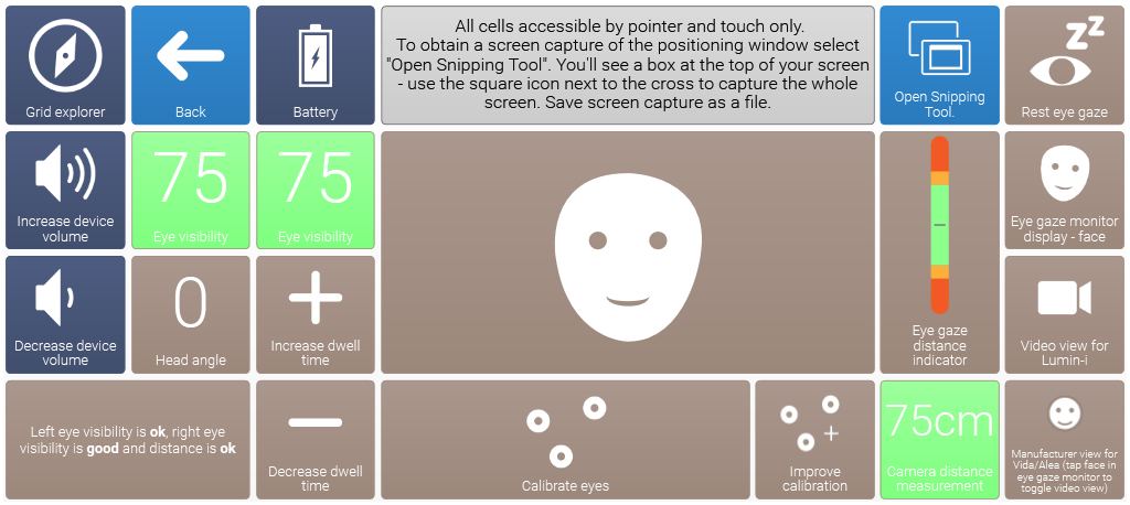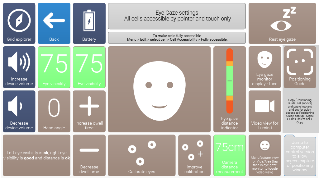 Eye gaze positioning guide grid set with a link to the Smartbox Positioning Guide and a computer control version to allow for a screen capture of eye gaze positioning window.