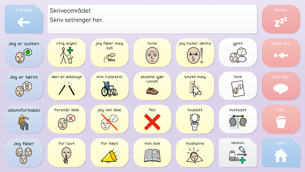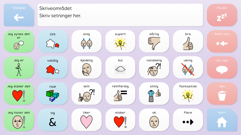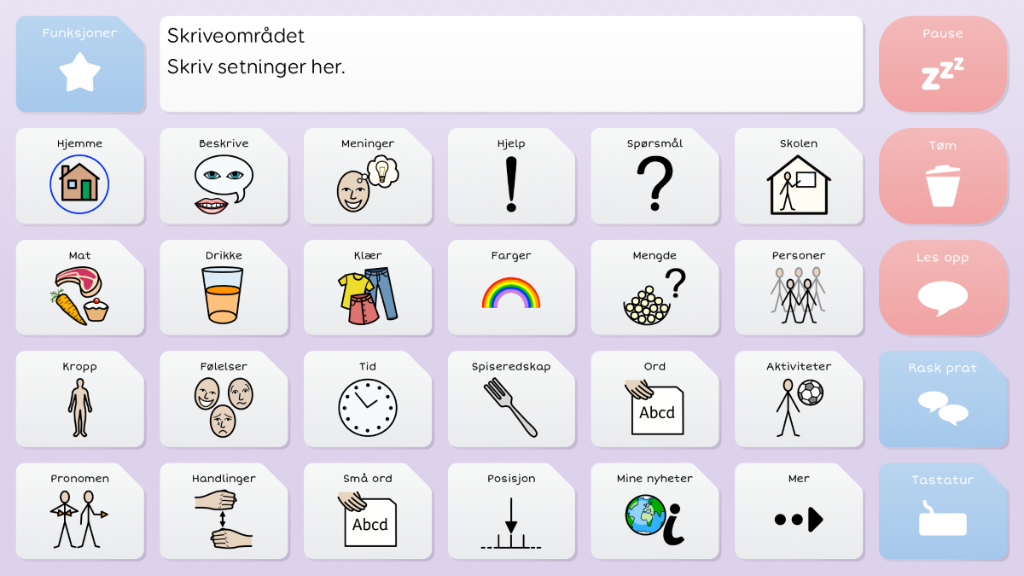Symbol Prat er en pakke med kommunikasjonsoppsett for symbolbrukere. Her finner du sider for å uttrykke meninger, samt sider som omhandler ulike tema som skole, hjem, trening og mye mer.