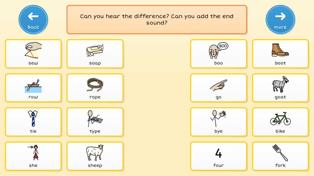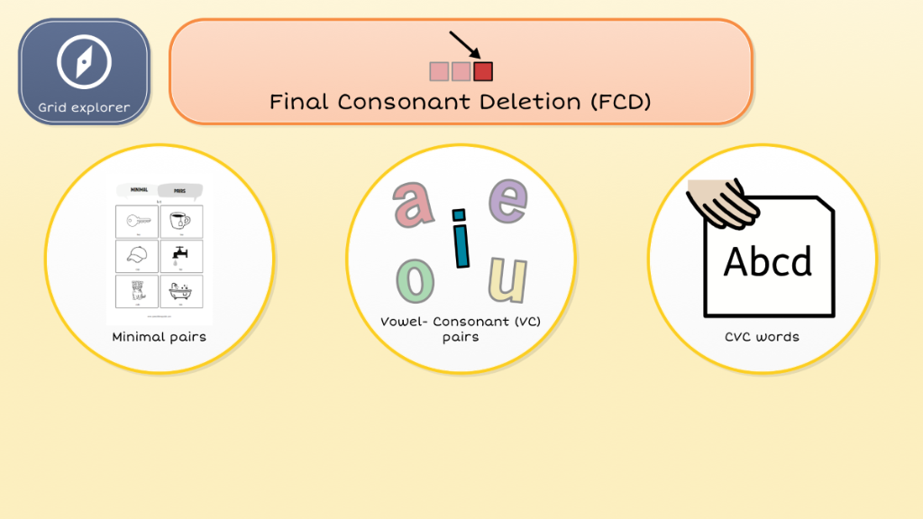 Speech sound grid set to target Final Consonant Deletion (FCD)