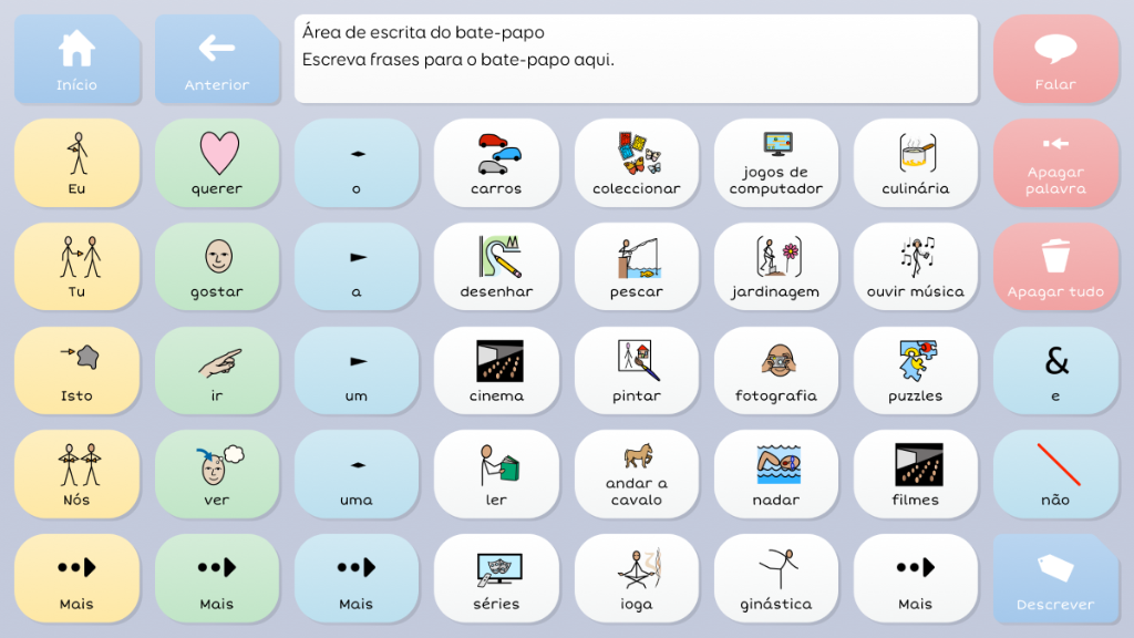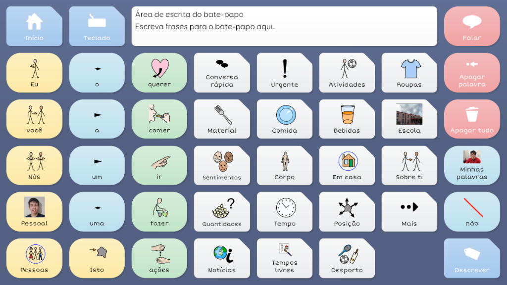 O Comunicação por Símbolos C (CS C) permite uma comunicação mais alargada que o CS B. Neste conjunto de teclado já pode conjugar alguns verbos.