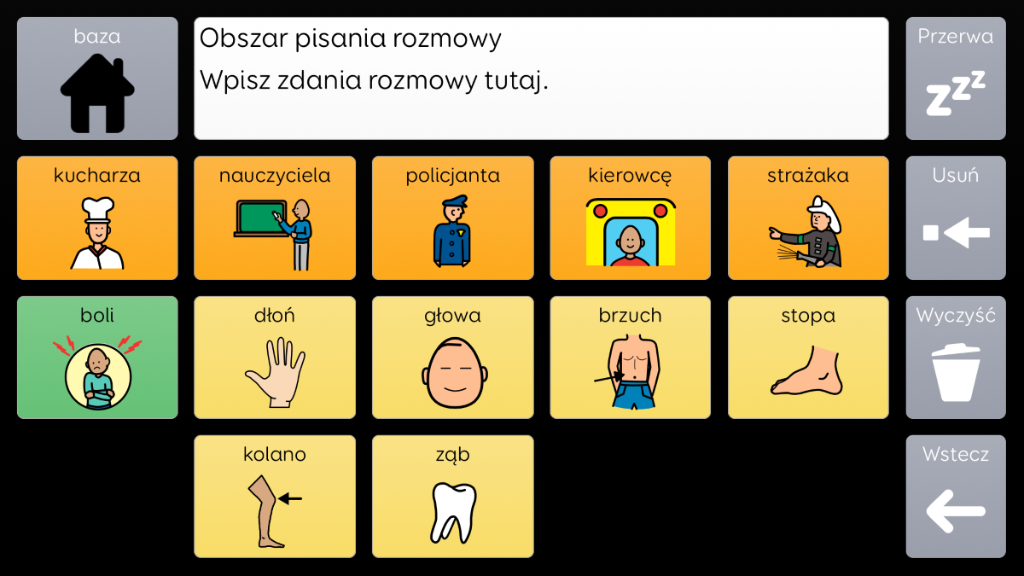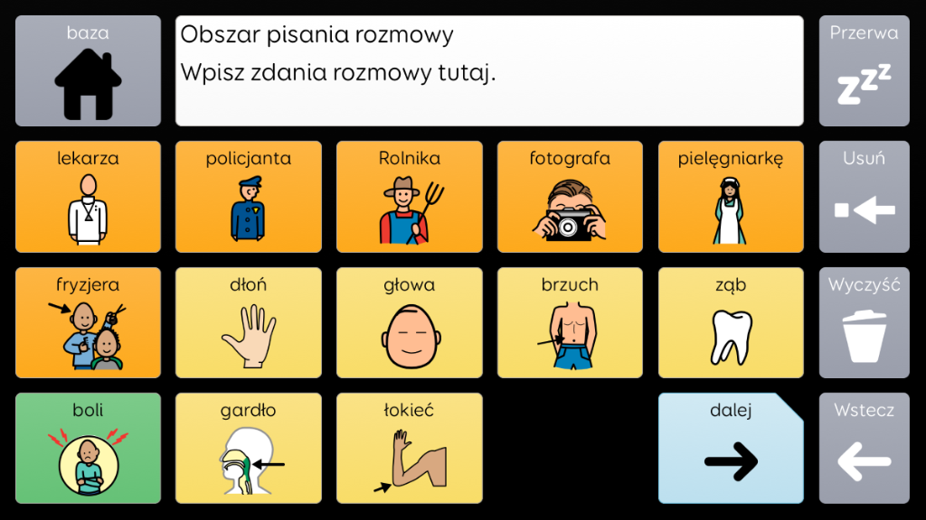 Voco Chat to słownik symboli o małej liczbie komórek, zaprojektowany tak, aby umożliwiać użytkownikom komunikację w różnych sytuacjach życiowych. Ścieżki komunikacyjne, z wbudowanymi skokami i starannie dobranym słownictwem, zapewniają wsparcie w kwestiach językowych. Zestaw tablic zawiera zasoby wspierające komunikację i dobre samopoczucie emocjonalne oraz uwzględnia takie aplikacje, jak Symoji czy aparat, aby ułatwiać użytkownikom interakcję i zaangażowanie. Słownik Voco Chat jest odpowiedni dla każdego, kto potrzebuje większych komórek. Do obsługi można użyć dotyku, spojrzenia, wskaźnika lub przełączników. Kolumny i pojedyncze komórki zawierają podpowiedzi dźwiękowe. Po dodaniu słownika Voco Chat po raz pierwszy można wybrać wersję dla dzieci lub dla nastolatków i dorosłych, aby dopasować słownictwo do użytkownika. v1.04