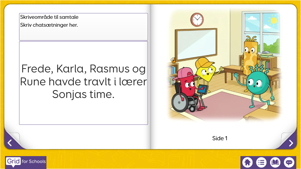 Rosa føler sig genert, da det er hendes første dag i skole, men Rune, Rasmus, Karla og Frede får hende til at føle sig velkommen. snart viser hum dem hvor god hun er til at tegne raketer. Læs bogen og find ud af om Rosa får nye venner. I denne version kna du læse teksten med ét klik per side.