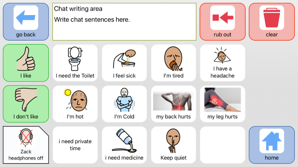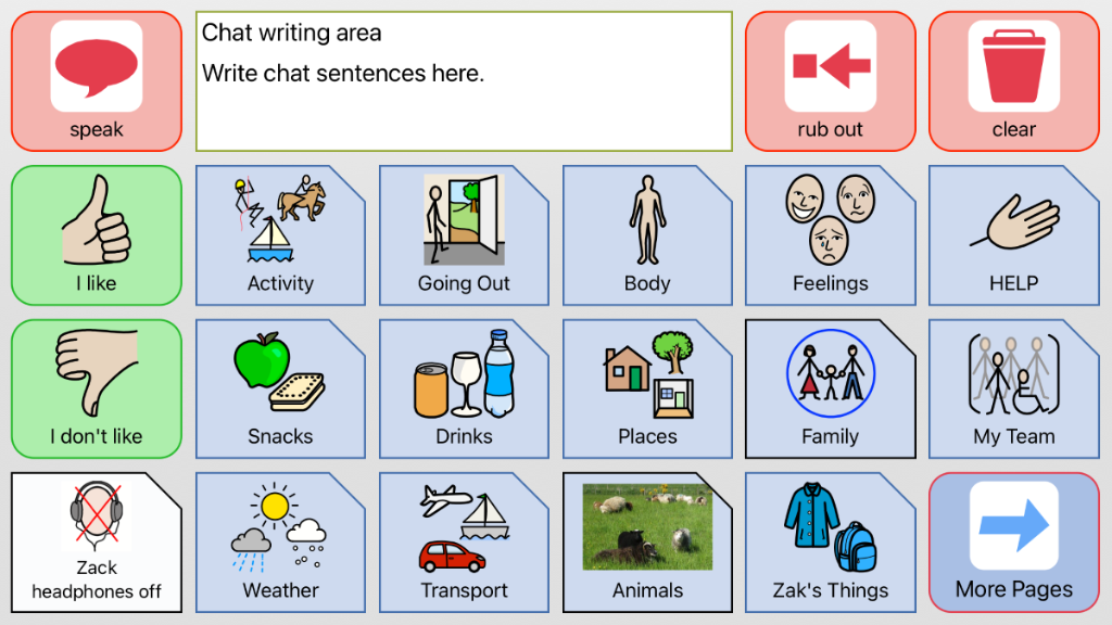 Symbol Talker is a complete vocabulary package for someone who wishes to use symbols to talk. It has pages to prompt opinions, as well as pages for School, Home and Therapy use.