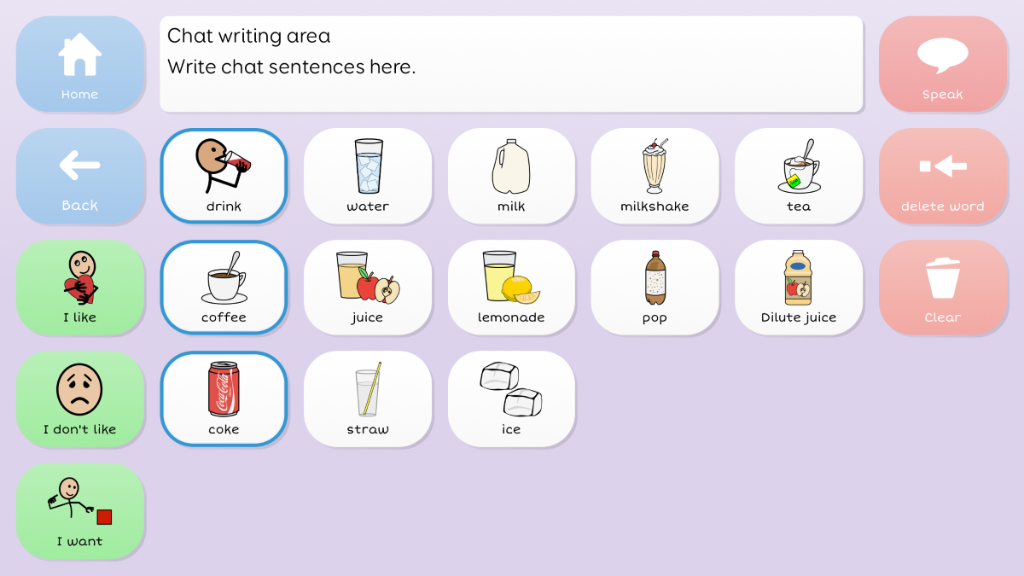 Symbol Talker is a complete vocabulary package for someone who wishes to use symbols to talk. It has pages to prompt opinions, as well as pages for School, Home and Therapy use.