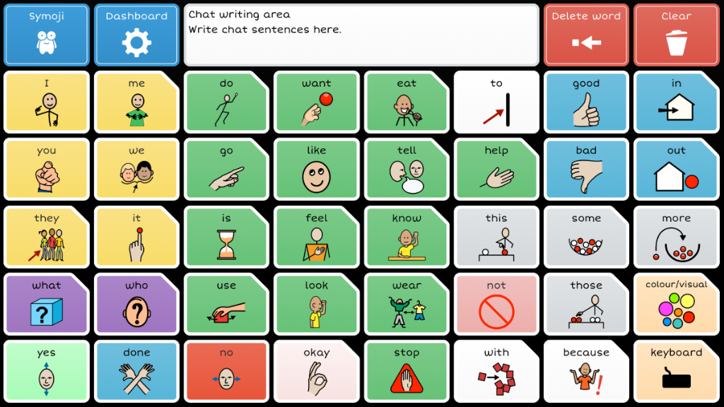 This is an incomplete replica of the open board: Quick Core 40. Includes word forms in a dashboard and a symoji page linked from home page. Message history on punctuation page linked from keyboard page. Some pages are complete. There is a blank template page you can copy. Some lables are changed to more New Zealand English. Mixed symbols!