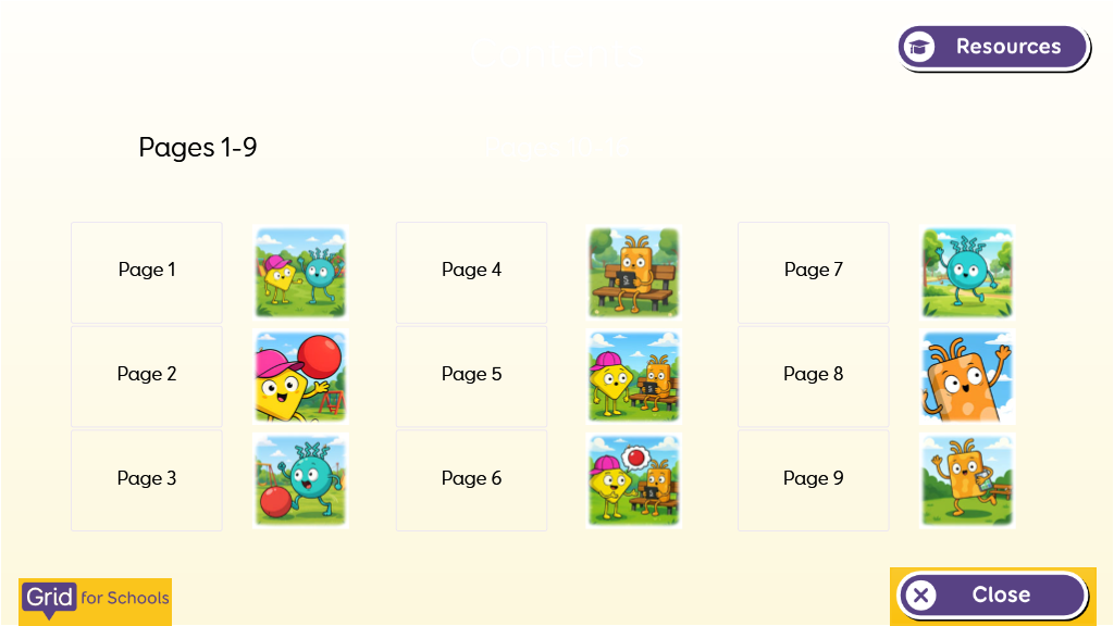 Large "turn the page" cells.